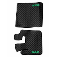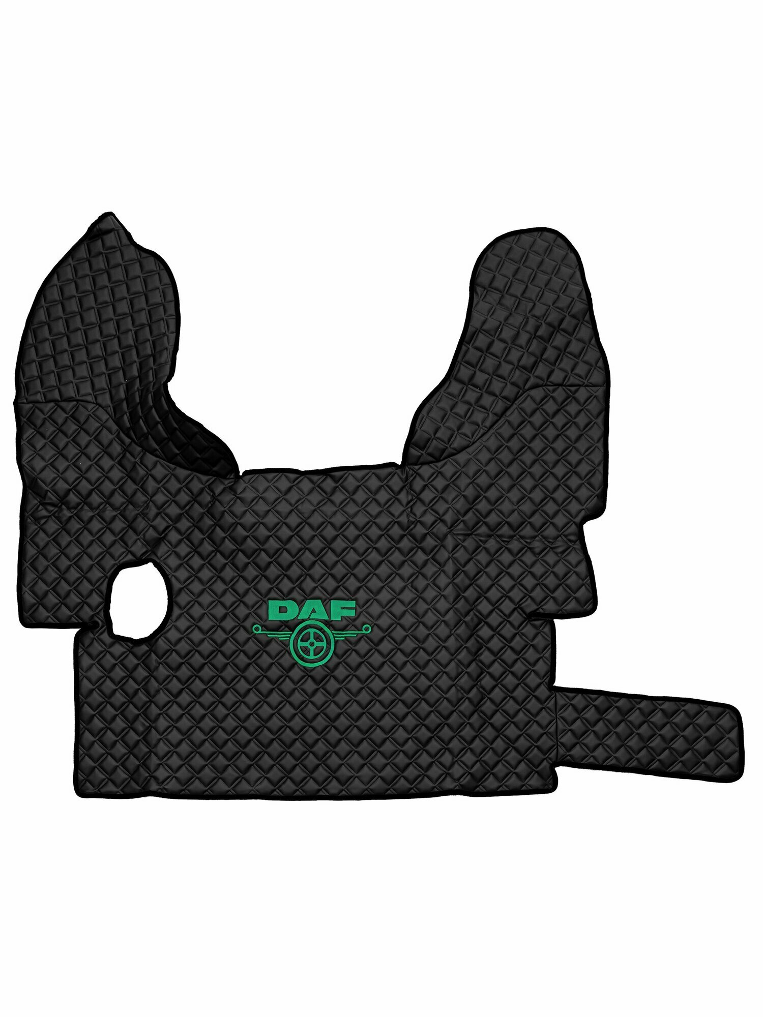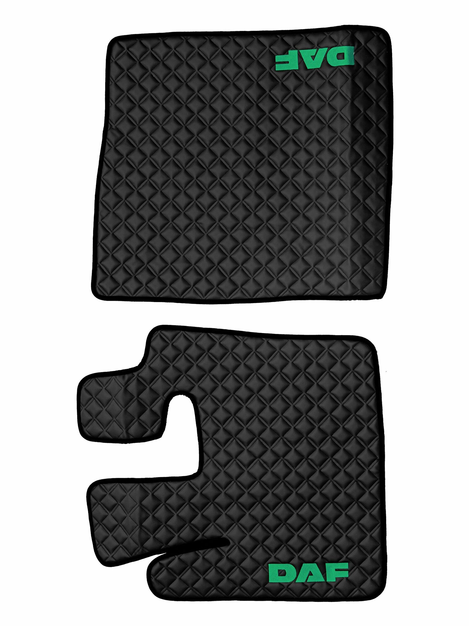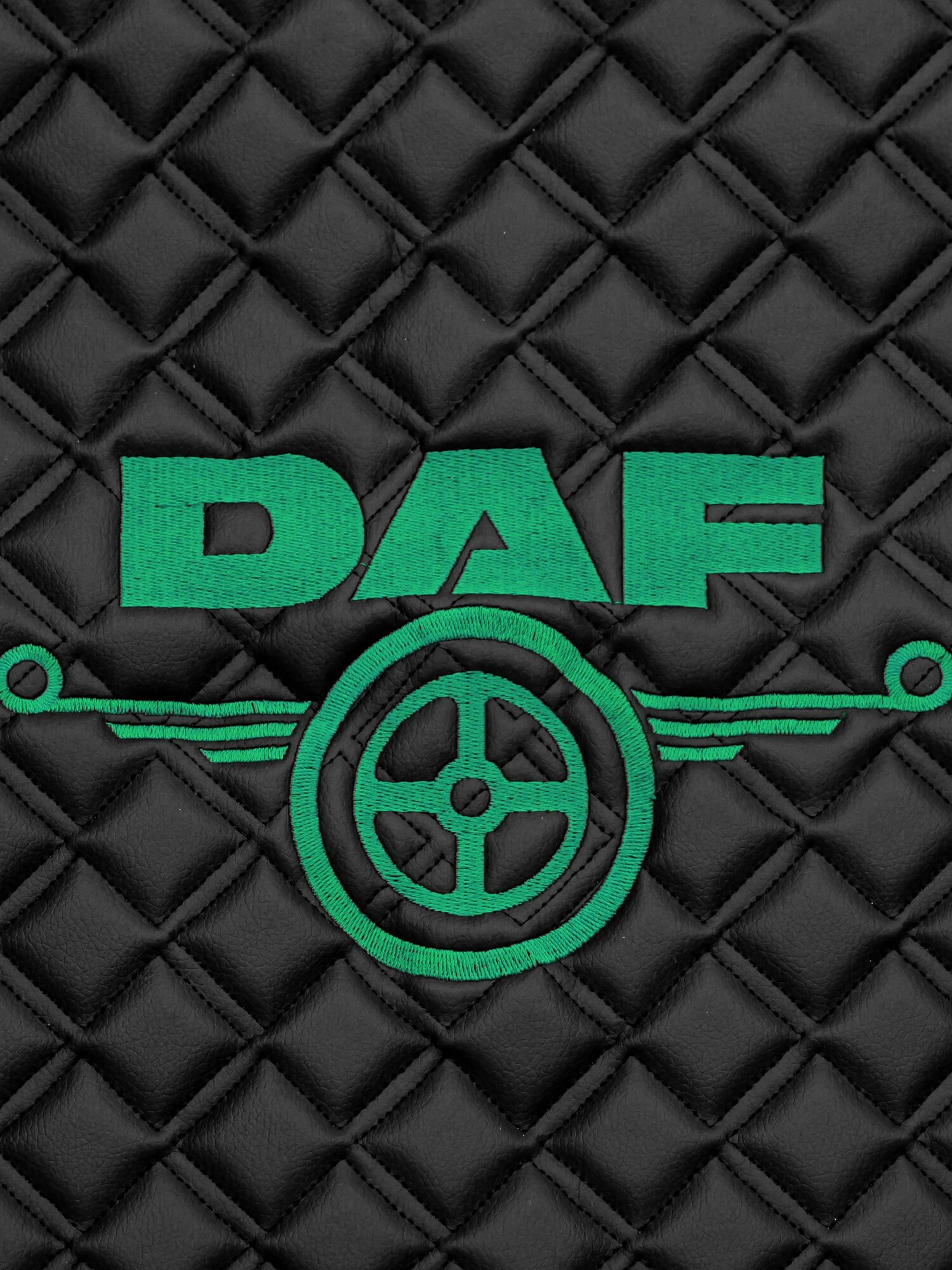 Купить Ковры стеганые для грузовых автомобилей Daf XF-105 с 2006г (механика), черный цвет с зеленой вышивкой и черным кантом. Экокожа — 3шт в комплекте (пассажир+водитель+шахта). Даф с доставкой по всей России.