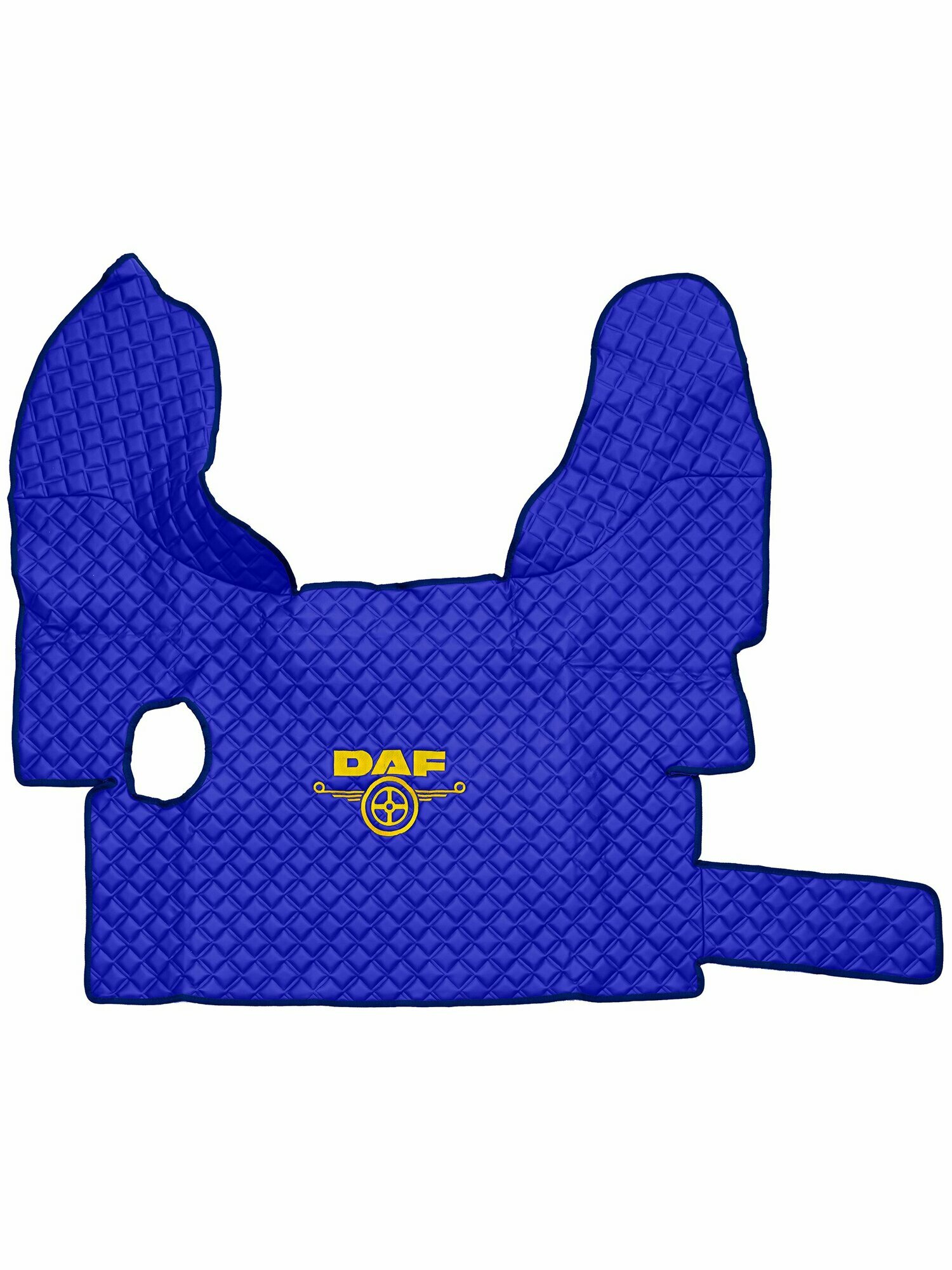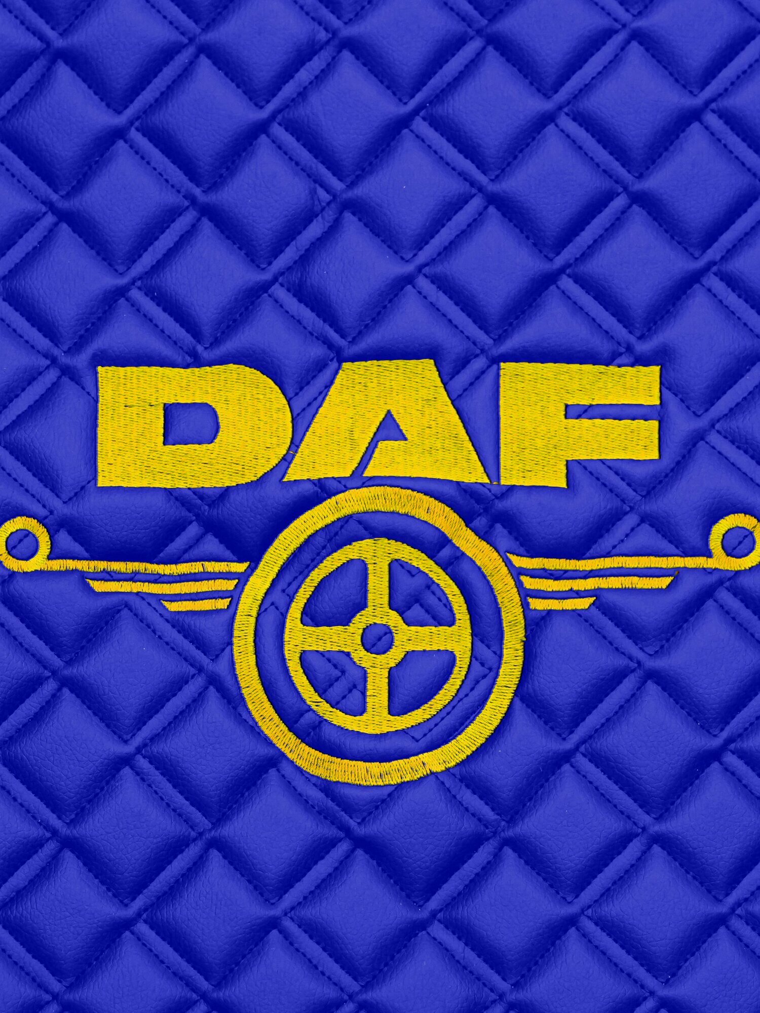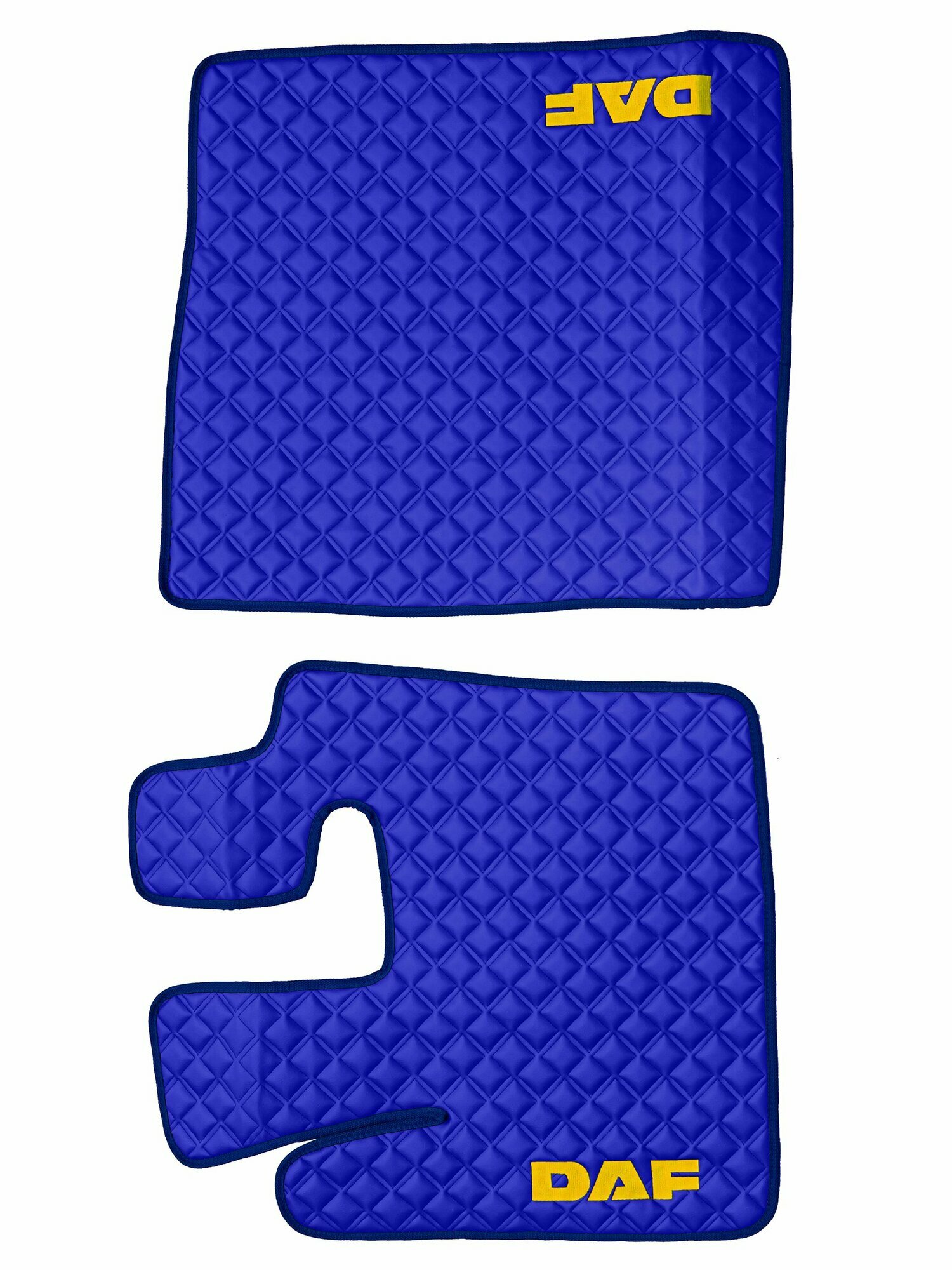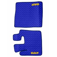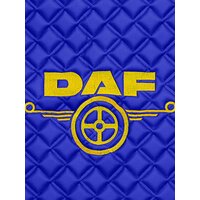 Купить Ковры стеганые для грузовых автомобилей Daf XF-105 с 2006г (механика), синий цвет с желтой вышивкой и синим кантом. Экокожа — 3шт в комплекте (пассажир+водитель+шахта). Даф с доставкой по всей России.