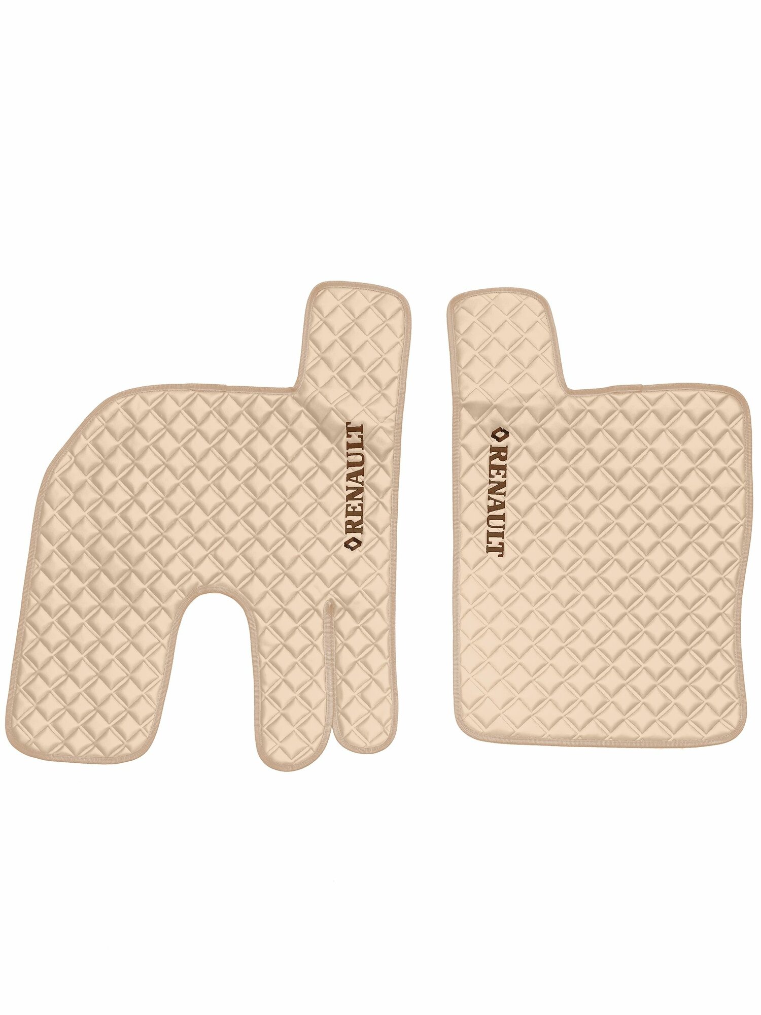 Купить Ковры стеганые для грузовых автомобилей RENAULT T (автомат), бежевый цвет с коричневой вышивкой и бежевым кантом. Экокожа — 3шт в комплекте (пассажир+водитель+шахта). Рено с доставкой по всей России.