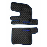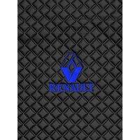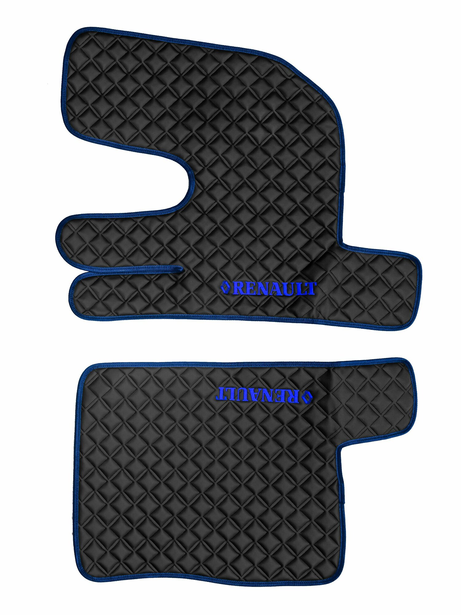 Купить Ковры стеганые для грузовых автомобилей RENAULT T (автомат), черный цвет с синей вышивкой и синим кантом. Экокожа — 3шт в комплекте (пассажир+водитель+шахта). Рено с доставкой по всей России.