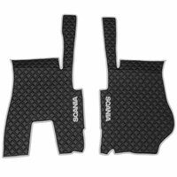 Ковры стеганые для грузовых автомобилей SCANIA 5 серии P (механика), черный цвет с серой вышивкой и серым кантом. Экокожа — 3шт в комплекте (пассажир+водитель+шахта): сравнение цен, характеристики, фото, актуальное наличие и цены.