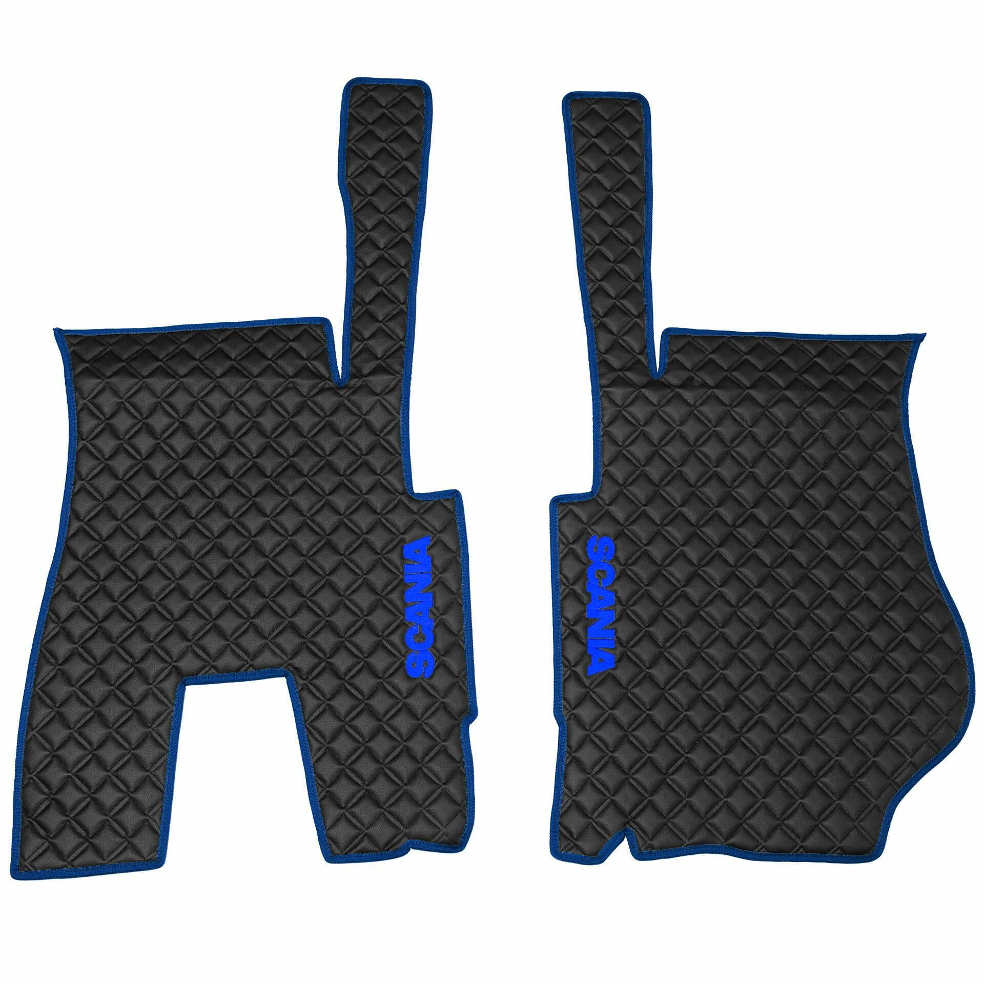 Ковры стеганые для грузовых автомобилей SCANIA 5 серии P (механика), черный цвет с синей вышивкой и синим кантом. Экокожа — 3шт в комплекте (пассажир+водитель+шахта): сравнение цен, характеристики, фото, актуальное наличие и цены.