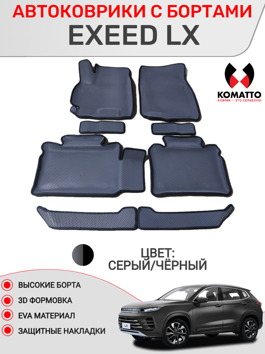Ковры в салон 3D EVA для Exeed LX. С дополнительными накладками. Цвет Серый/Черный: сравнение цен, характеристики, фото, актуальное наличие и цены.