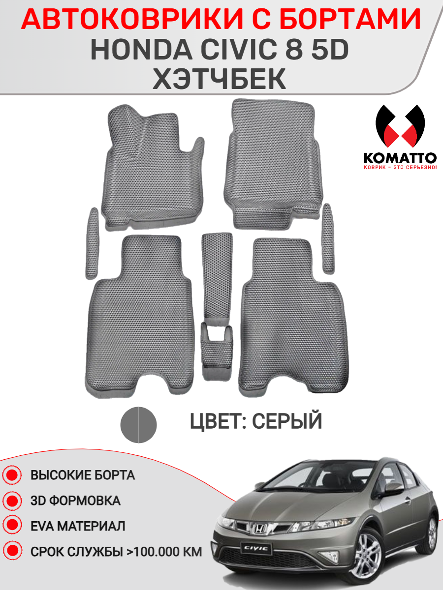 Купить Ковры в салон 3D EVA для Honda Civic 5d, Хэтчтбэк. Цвет: Серый. Перемычка из двух частей. Доп. защита у порогов. с доставкой по всей России.