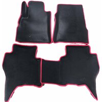 В набор входят коврики первого ряда салона, выполненные в черном цвете с красными элементами.