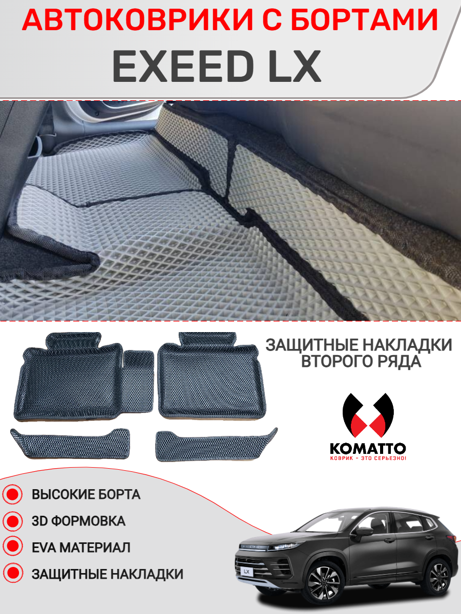 Купить Ковры в салон Exeed LX, 3D EVA. С дополнительными накладками. Цвет Черный/Cиний с доставкой по всей России.