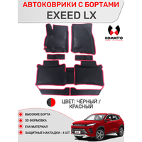 Купить Ковры в салон Exeed LX, 3D EVA. С дополнительными накладками. Цвет Черный/Красный с доставкой по всей России.