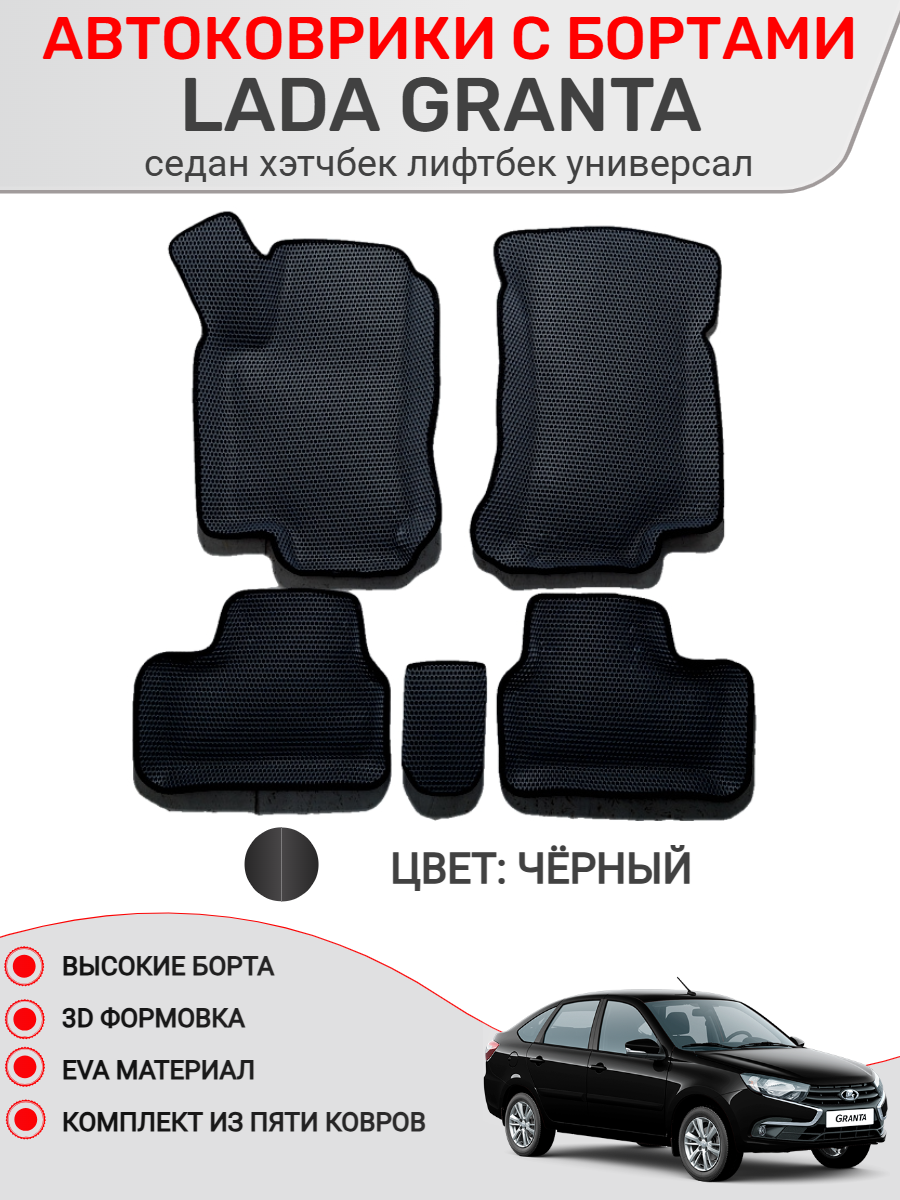 Ковры в салон с бортами 3D EVA для Lada Granta. Цвет Черный/Черный: сравнение цен, характеристики, фото, актуальное наличие и цены.