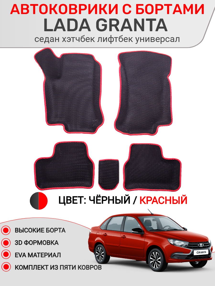 Ковры в салон с бортами 3D EVA для Lada Granta. Цвет Черный/красный: сравнение цен, характеристики, фото, актуальное наличие и цены.