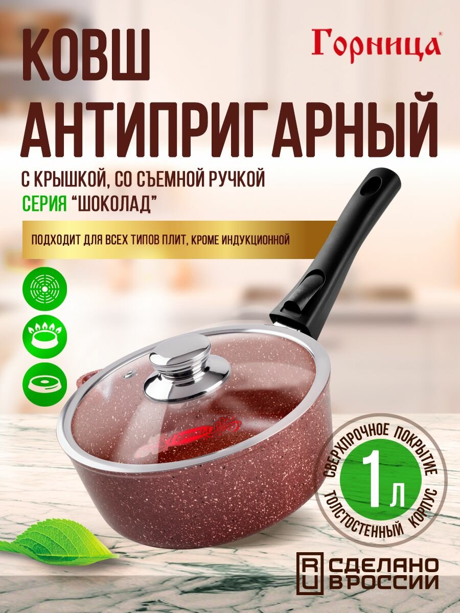 Купить Ковш антипригарный литой 1,0л со съемной ручкой и стеклянной крышкой Шоколад ТМ Горница с доставкой по всей России. Ковш антипригарный литой 1,0л со съемной ручкой и стеклянной крышкой Шоколад ТМ Горница: сравнение цен, характеристики, фото, актуальное наличие и цены.