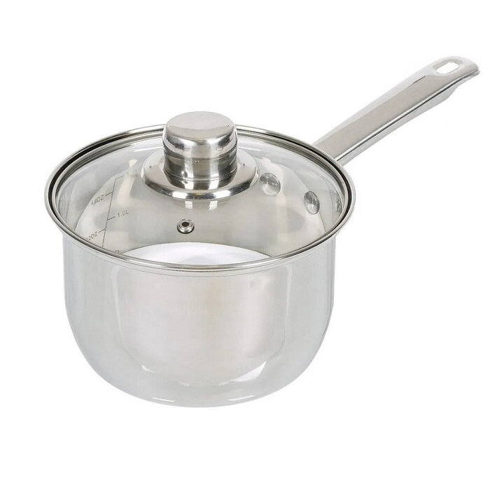 Металлические посуда и инвентарь изготовлены из нержавеющей стали, с тройным и двойным капсульным дном, которое по функционалу похоже на кастрюли с антипригарным покрытием, отличается надежным долговечным покрытием и является лучшим выбором для дома, а также в качестве подарка. Ковшик кухонный маленький подходит для газовых, электрических и стеклокерамических плит.