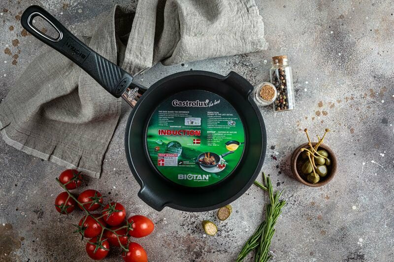 Датская компания Gastrolux, на рынке уже 60 лет и успела зарекомендовать свою продукцию как функциональную, надежную и высококачественную для здорового образа жизни. Производитель использует высокотехнологичное минеральное запатентованное покрытие BIOTAN, которое является гордостью компании. Основа покрытия состоит из остатков панциря мельчайших моллюсков, живших в океане миллионы лет назад. Такое покрытие создает шероховатый рельеф на дне и стенках посуды, как бы крошечные «впадины» и «вершины», что позволяет нанести больший слой усиленного, плотного, непористого антипригарного покрытия. Оптимальное распределение тепла по всей поверхности. Вся продукция имеет уникальный номер контроля качества PFOA и PFOS. Фиксированные эргономичные ручки. Можно использовать в духовом шкафу при температуре до 260°CПроизводство: Дания После использования сотейник легко моется, так же можно мыть в посудомоечной машине. Идеально подходит для приготовления соусов, каши, варки овощей и приготовления супов.