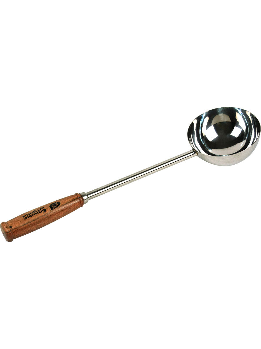 Деревянная ручка ковша длиной 35 см защищает кисть от ожога, а благодаря длинному металлическому основанию рукояти, ковш можно положить на горячую поверхность, не опасаясь подгорания древесины.