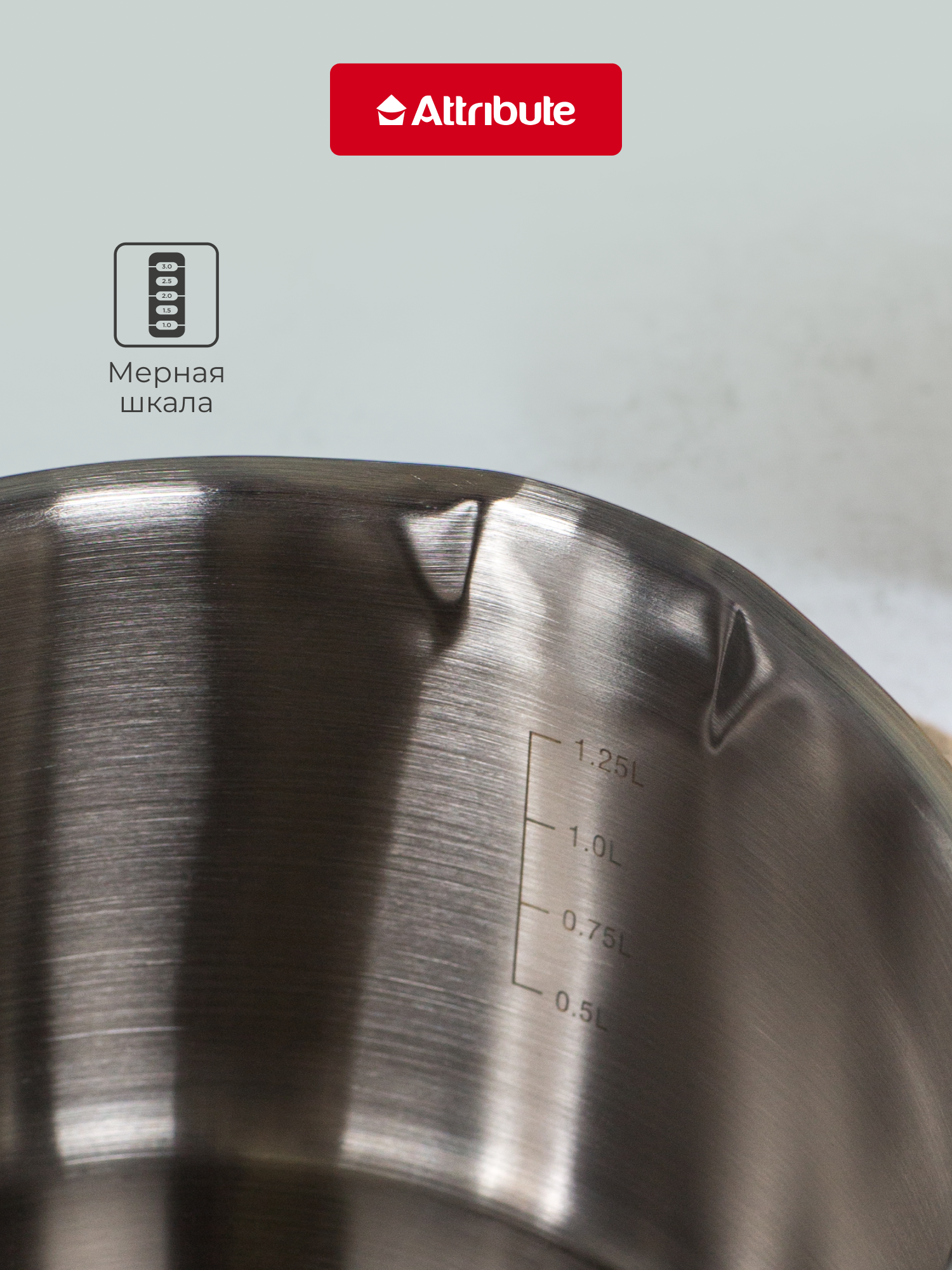 Купить Ковш из нержавеющей стали с крышкой Attribute DAVINCI 1.75л 16см индукция с доставкой по всей России.