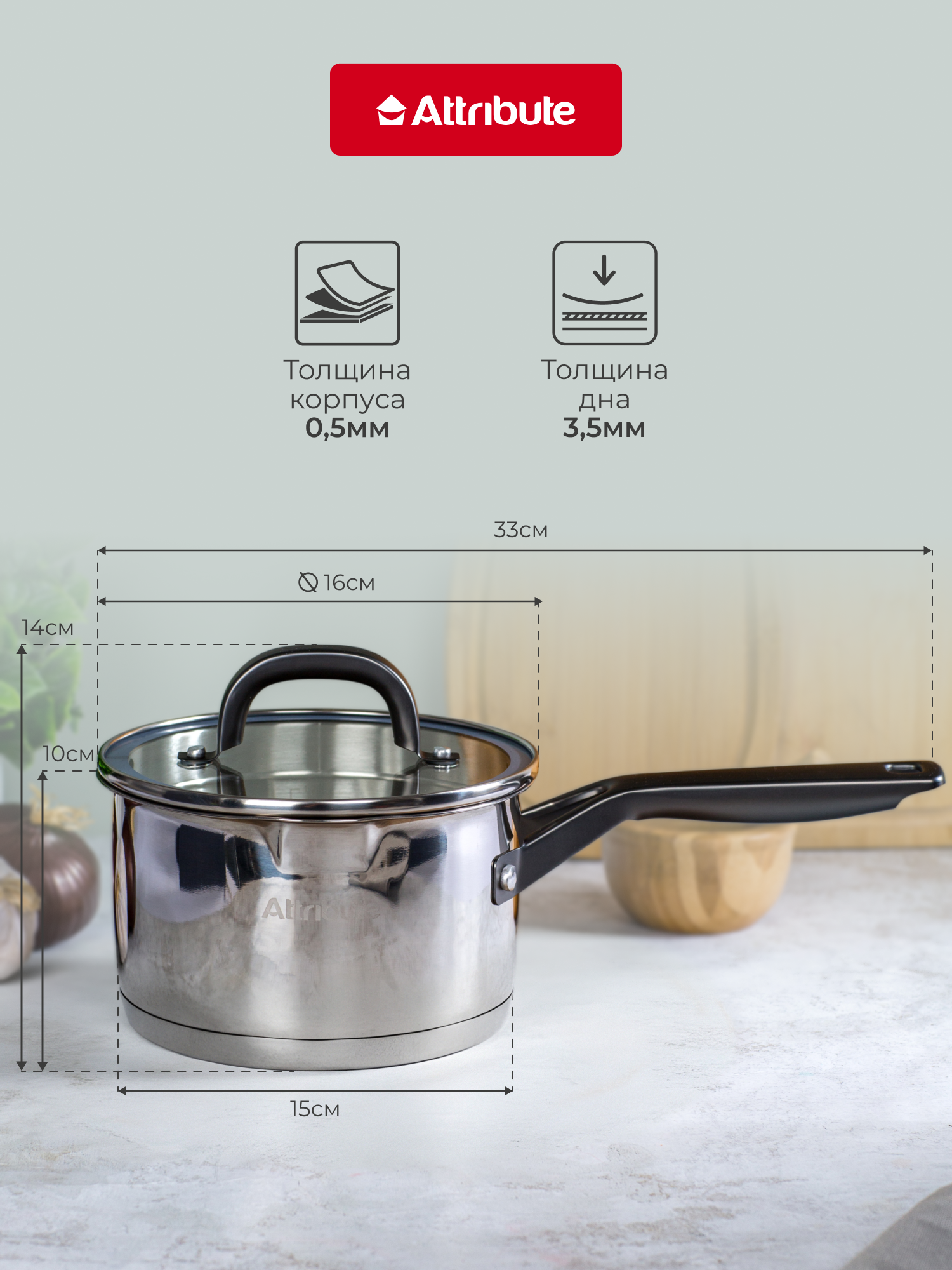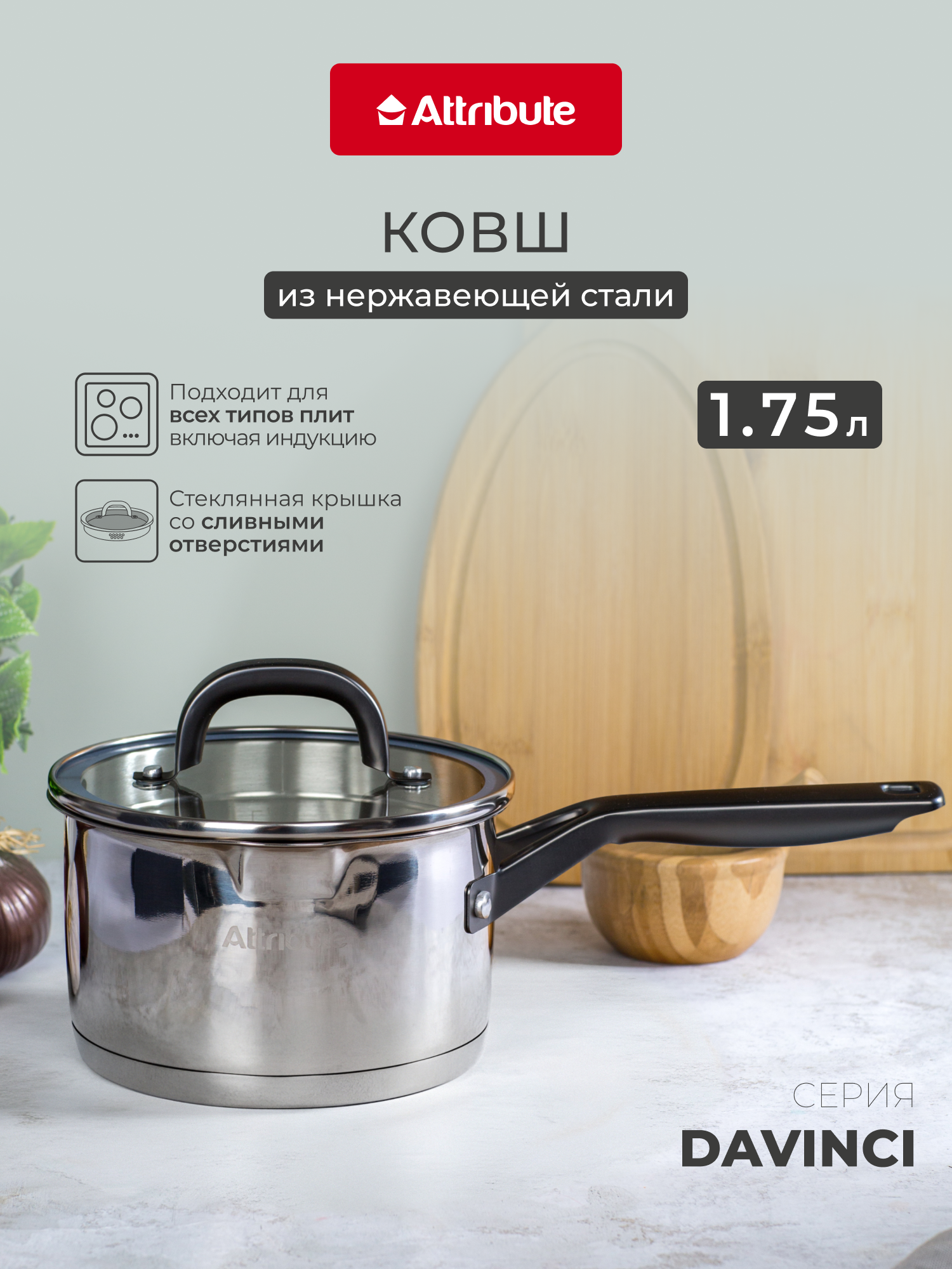 Ковш из нержавеющей стали с крышкой Attribute DAVINCI 1.75л 16см индукция: сравнение цен, характеристики, фото, актуальное наличие и цены.