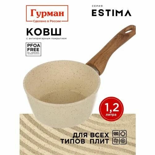 Ковш Гурман алюминиевый, с антипригарным покрытием, 1,2 л, с пластиковой ручкой, индукционный, бежевый, Estima: сравнение цен, характеристики, фото, актуальное наличие и цены.