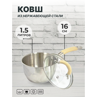Ковш кухонный из нержавеющей стали 1,5 л с крышкой 16 см, ковш с крышкой для газовой, электрической, индукционной плиты: сравнение цен, характеристики, фото, актуальное наличие и цены.
