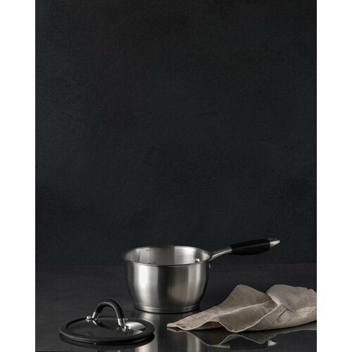 Ковш оснащен крышкой, которая обеспечивает герметичность и сохраняет аромат и вкус продуктов. Фиксированная ручка обеспечивает удобство и безопасность при использовании.