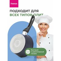 Ковш изготовлен из высококачественных материалов, что гарантирует его долговечность и надежность. Антипригарное покрытие внутри позволяет готовить с минимальным количеством масла или вообще без него, что особенно оценят приверженцы здорового питания. Это покрытие предотвращает пригорание пищи и легко очищается, экономя ваше время и усилия при уборке.