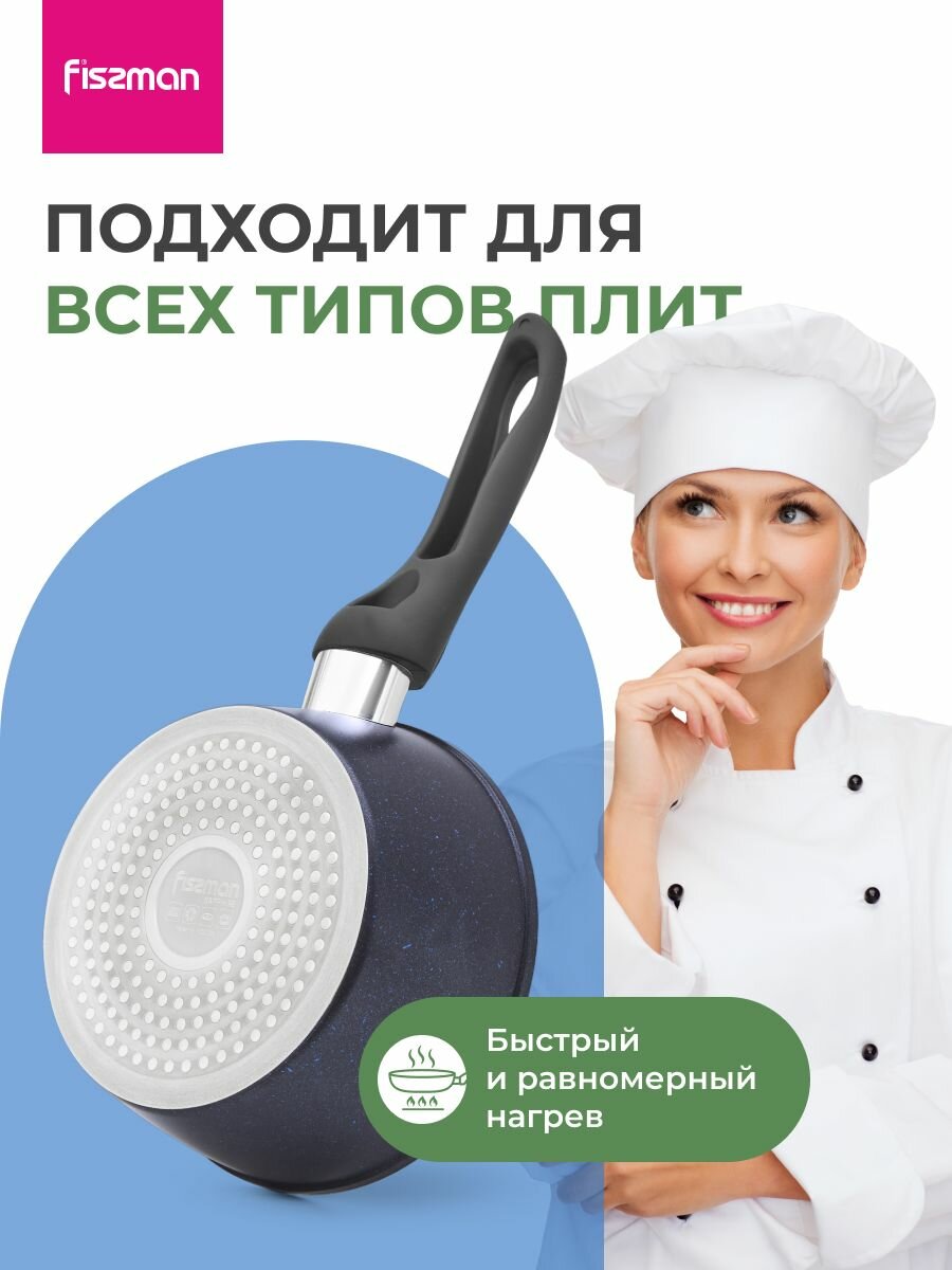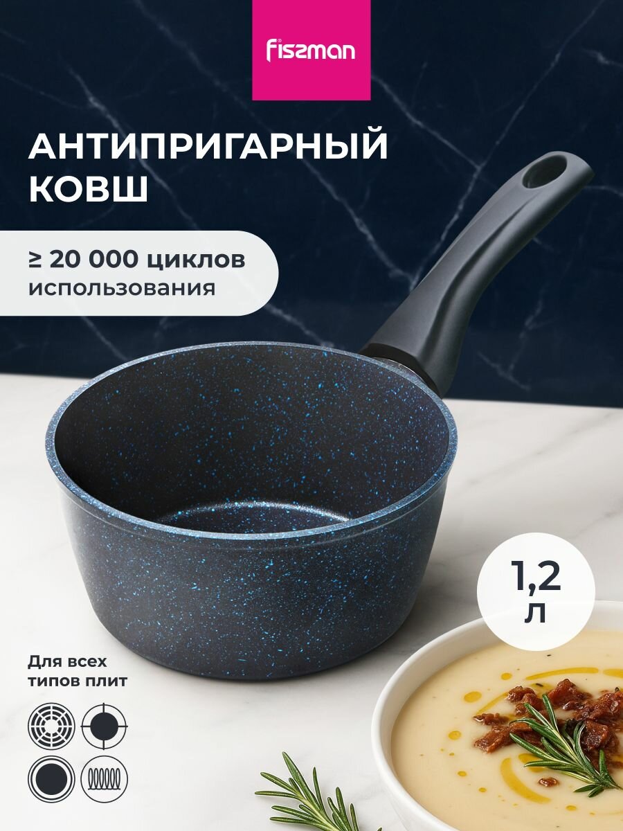Ковш кухонный SAPPHIRE PRO с антипригарным покрытием 1,2 л от бренда Fissman станет незаменимым помощником на вашей кухне. Этот ковш сочетает в себе стильный дизайн и отличные функциональные характеристики, обеспечивая комфорт и удовольствие в процессе приготовления различных блюд.