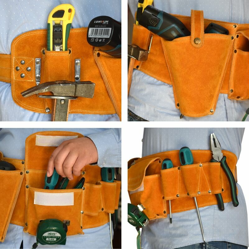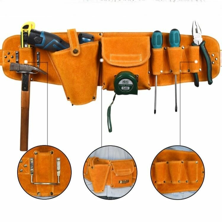 пояс с ремнем для переноски инструментов. карманы, скоба для рулетки. Изготовлена из кожи высокого качества, усилена заклепками, двойная строчка. сумка монтажника изготовлен из натуральной кожи, что гарантирует долгий срок службы. Содержит разные по величине карманы и захваты для молотка. Поясная сумка применяется для транспортировки ручного инструмента и оснастки при проведении широкого спектра монтажных, электромонтажных, слесарных и других работ. переноска оснащена карманами для удобного распределения ручного инструмента и подвесками. необходимый инструмент всегда будет под рукой во время работы, даже на высоте при электромонтажных работах. Удобное ношение на поясе не затрудняет и не мешает движениям. Прочный материал гарантирует долгий срок службы сумки.