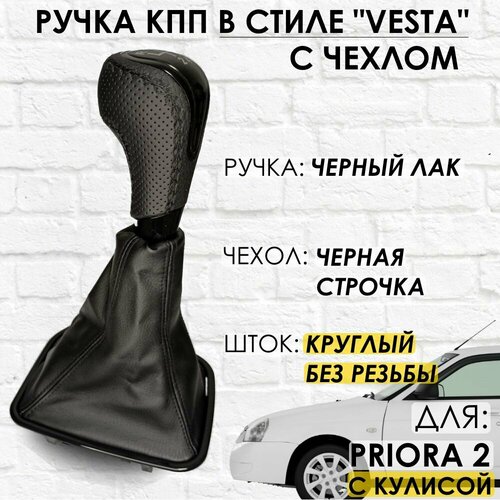 Комплект Кожух на КПП+Ручка КПП "Vesta style" обшитая Подходит для 1)Лада Приора 2 поколения с тяговой КПП, где R включается вперед и шток круглый без резьбы (тяговая кпп ставилась на некоторые авто +-2014г. в.) . 2)Приоры 1 конец 2011-2013 г. в. с тяговой КПП и тоннелем пола от Приора 2. Идеально впишется в интерьер Вашего автомобиля при замене затертого кожуха и ручки КПП или при желании внести что-то новое и красивое в дизайн салона автомобиля. Устанавливаются в штатные места креплений старого кожуха и ручки без каких-либо доработок. Материал ручек - пластик, обшитый экокожей; Материал чехлов - экокожа (дермантин); Крепление ручки - на круглый шток без резьбы с 1 направляющей; Крепление чехла - на пластиковой рамке; Крепление ручки к чехлу - хомут/изолента/резинка; Надписи на ручке не будут стираться со временем, т. к. они под слоем лака. Обратите внимание, оттенок и толщина строчек на чехле и ручке может отличаться, поскольку используются нитки разных производителей.
