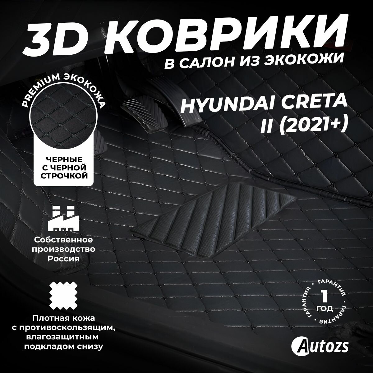 Кожаные 3D коврики в салон с бортами для Hyundai Creta II (2021+) черные с черной строчкой: сравнение цен, характеристики, фото, актуальное наличие и цены.