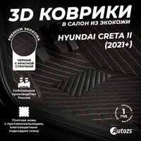 Кожаные 3D коврики в салон с бортами для Hyundai Creta II (2021+) черные с красной строчкой / Хендай Крета 2 (2021+): сравнение цен, характеристики, фото, актуальное наличие и цены.