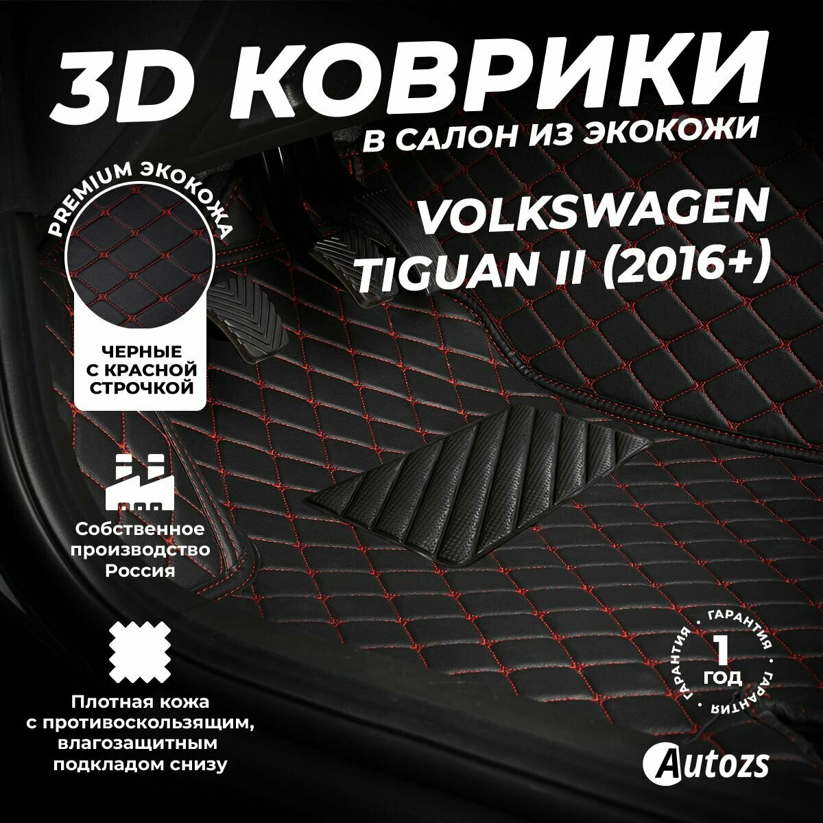 Кожаные 3D коврики в салон с бортами для Volkswagen Tiguan II (2016+) черные с красной строчкой / Фольксваген Тигуан 2 (2016+): сравнение цен, характеристики, фото, актуальное наличие и цены.