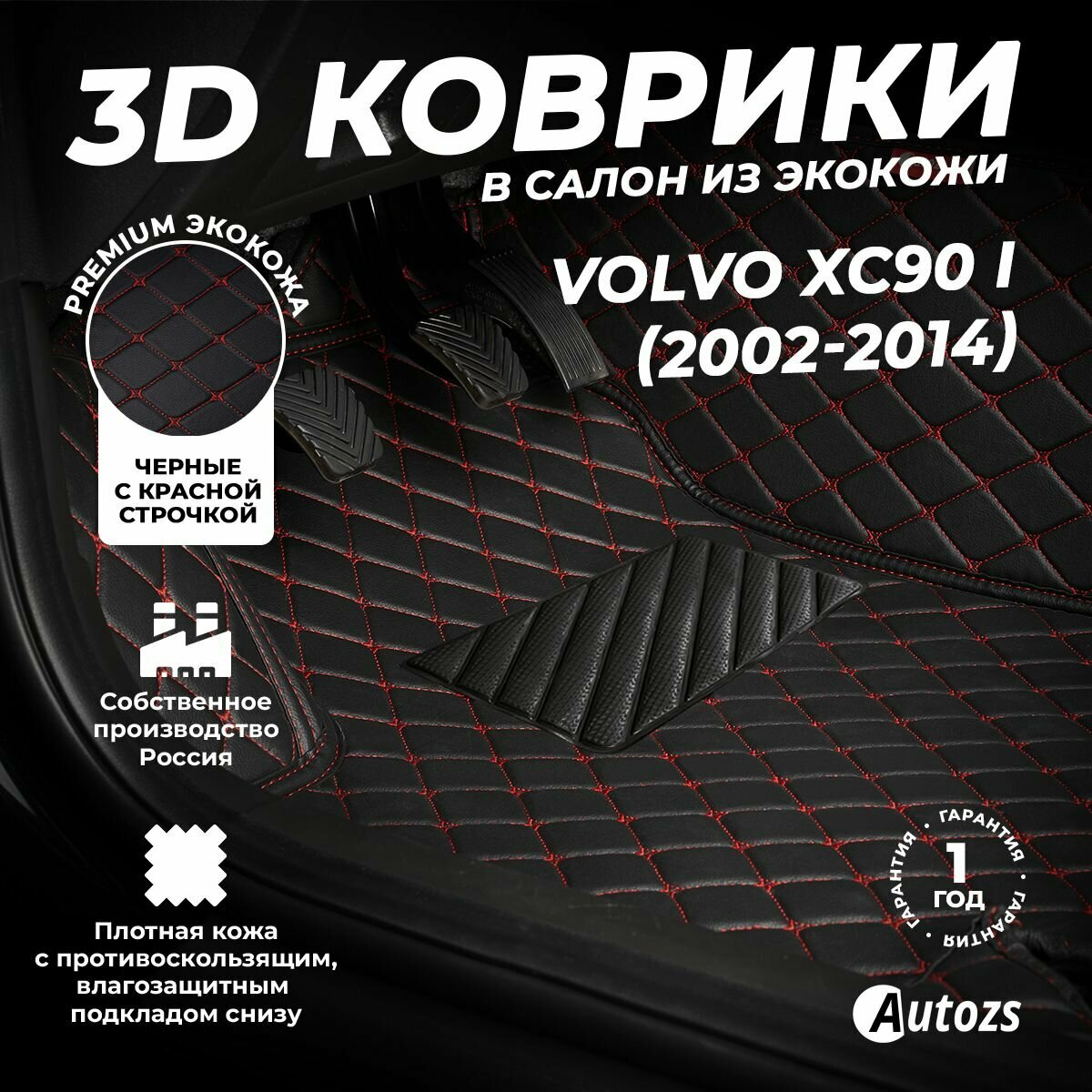 Кожаные 3D коврики в салон с бортами для Volvo XC90 I (2002-2014) черные с красной строчкой / Вольво ХС90 1 (2002-2014): сравнение цен, характеристики, фото, актуальное наличие и цены.