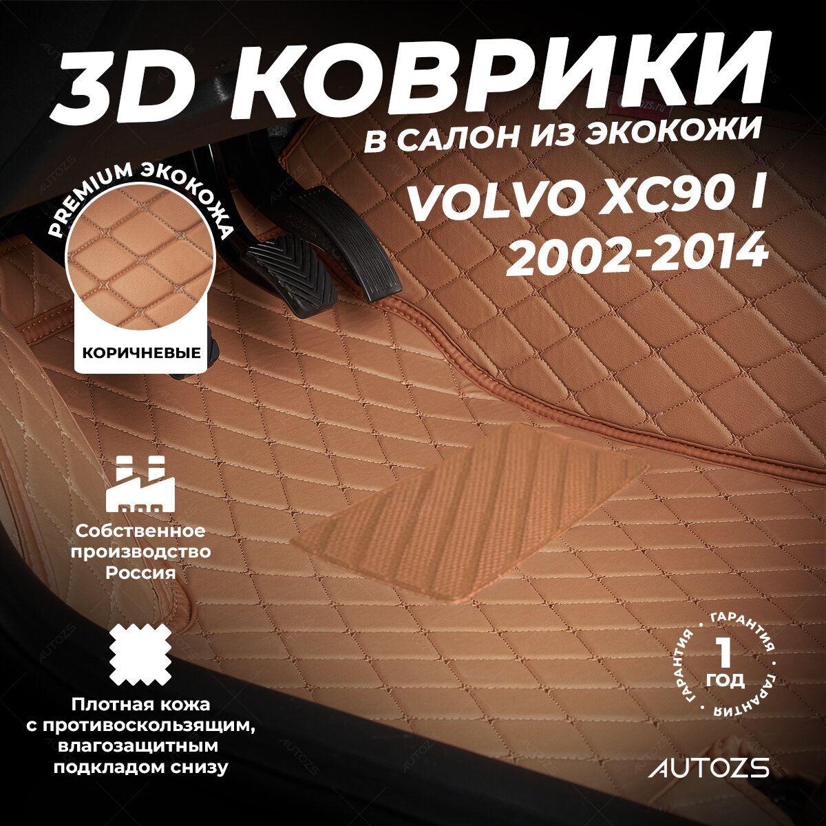 Кожаные 3D коврики в салон с бортами для Volvo XC90 I (2002-2014) коричневые/ Вольво ХС90 1 (2002-2014): сравнение цен, характеристики, фото, актуальное наличие и цены.