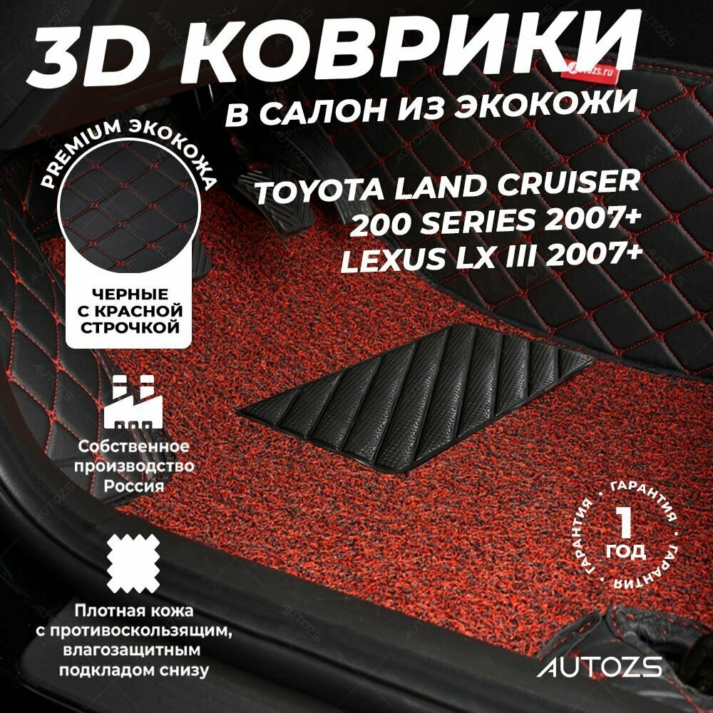 Кожаные 3D коврики в салон с бортами с красным ворсом для Toyota Land Cruiser 200 Series (2007+) черные с красной строчкой/Тойота, 3Д ковры в салон автомобиля: сравнение цен, характеристики, фото, актуальное наличие и цены.
