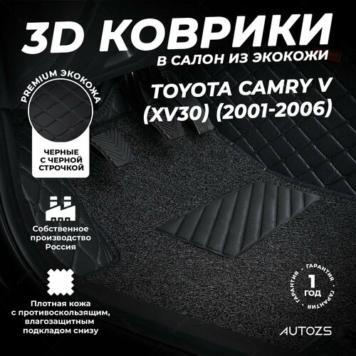 Купить Кожаные 3D коврики в салон с бортами с ворсом для Toyota Camry V (XV30) (2001-2006) черные с черной строчкой с доставкой по всей России. Кожаные 3D коврики в салон с бортами с ворсом для Toyota Camry V (XV30) (2001-2006) черные с черной строчкой: сравнение цен, характеристики, фото, актуальное наличие и цены.