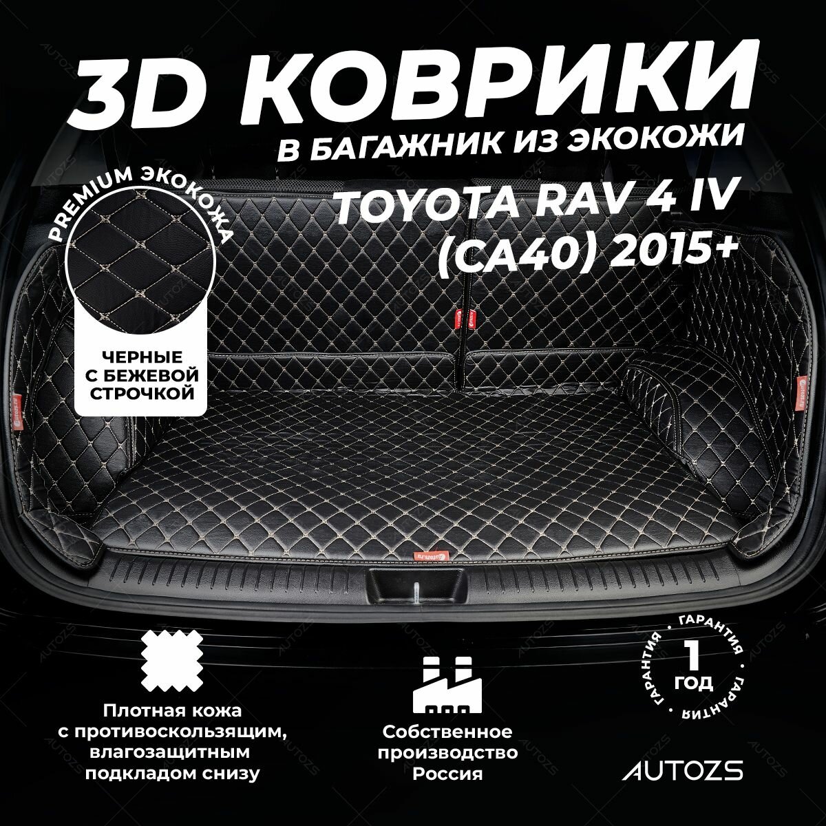 Кожаный 3D коврик в багажник чехол Toyota RAV 4 IV (CA40) (2015+) Полный комплект (с боковинами) Черный с бежевой строчкой: сравнение цен, характеристики, фото, актуальное наличие и цены.