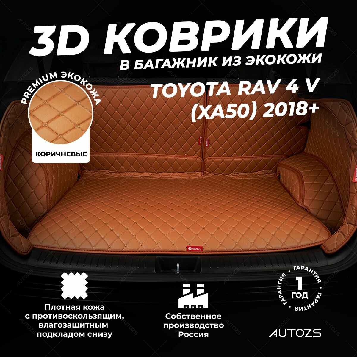 Кожаный 3D коврик в багажник чехол Toyota RAV 4 V (XA50) (2018+) Полный комплект (с боковинами) Коричневый 3Д ковры в автомобиль: сравнение цен, характеристики, фото, актуальное наличие и цены.