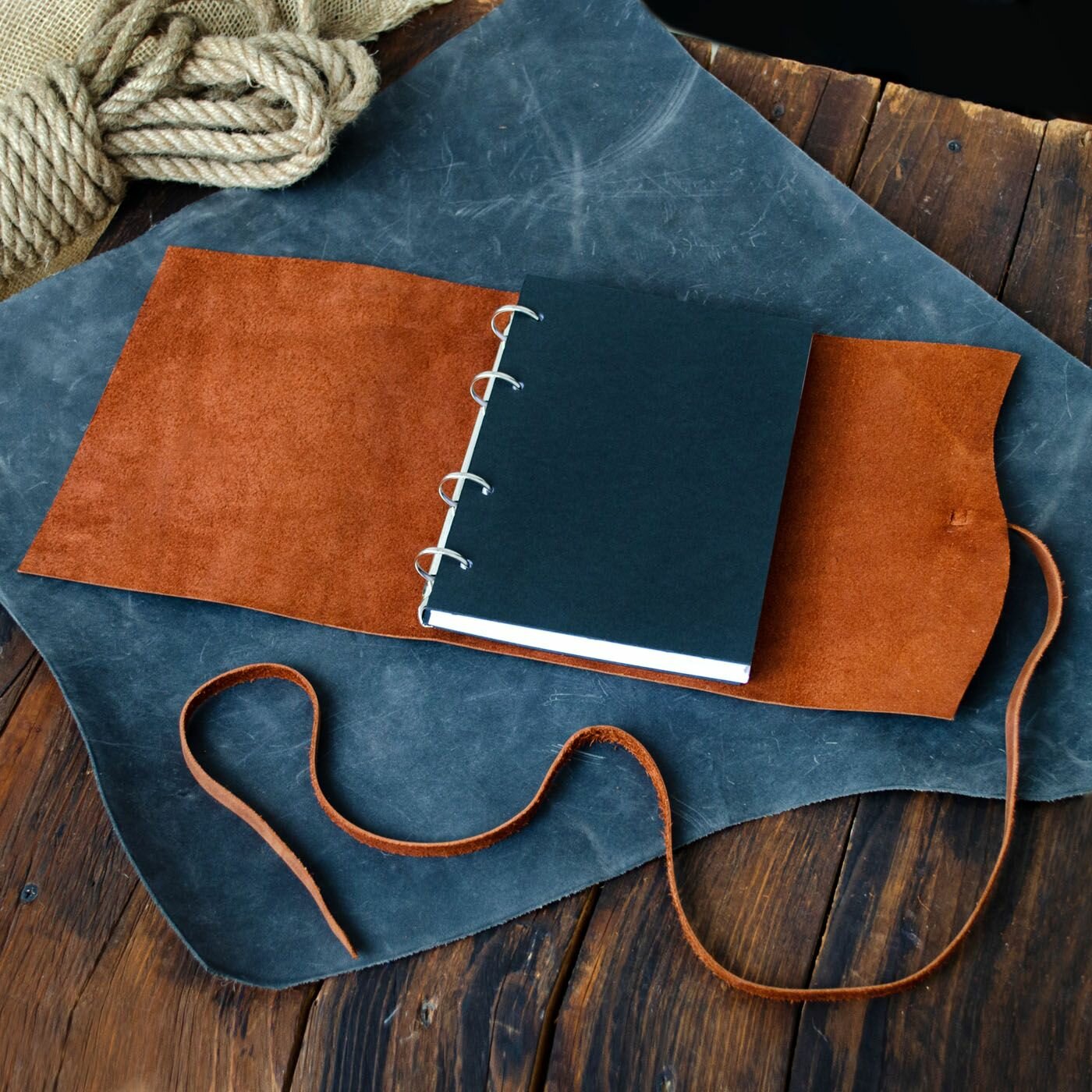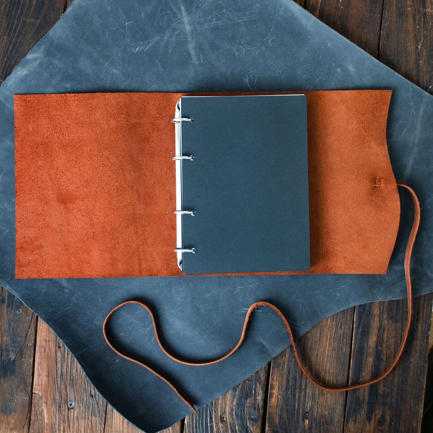 Кожаный блокнот на кольцах со сменным бумажным блоком