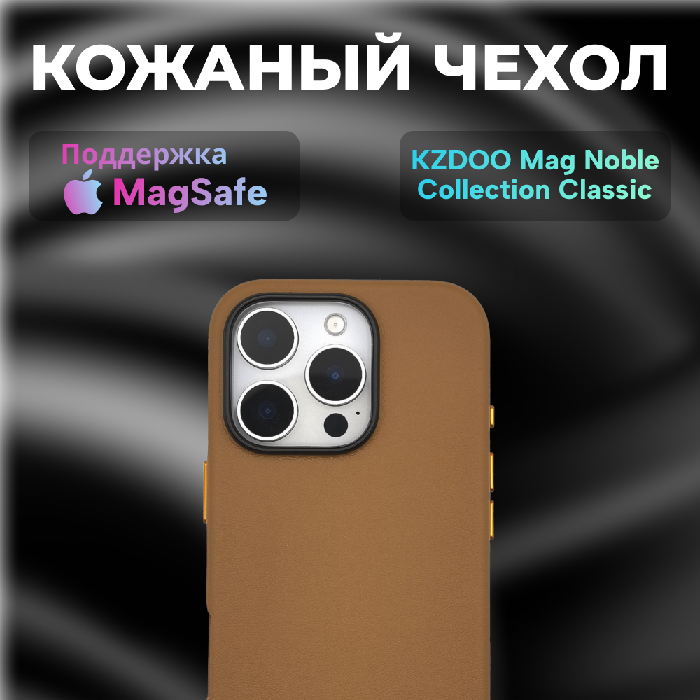 Купить Кожаный чехол для iPhone 16 Pro с MagSafe KZDOO Mag Noble Collection, Leather Case для Айфон 16 Про, коричневый с доставкой по всей России.
