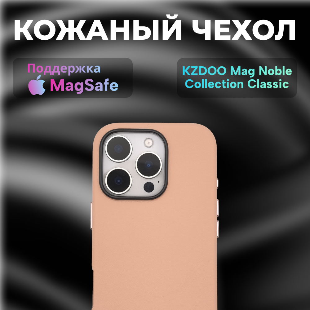 Купить Кожаный чехол для iPhone 16 Pro с MagSafe KZDOO Mag Noble Collection, Leather Case для Айфон 16 Про, розовый с доставкой по всей России.