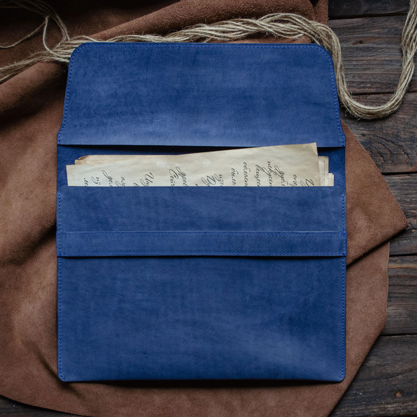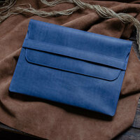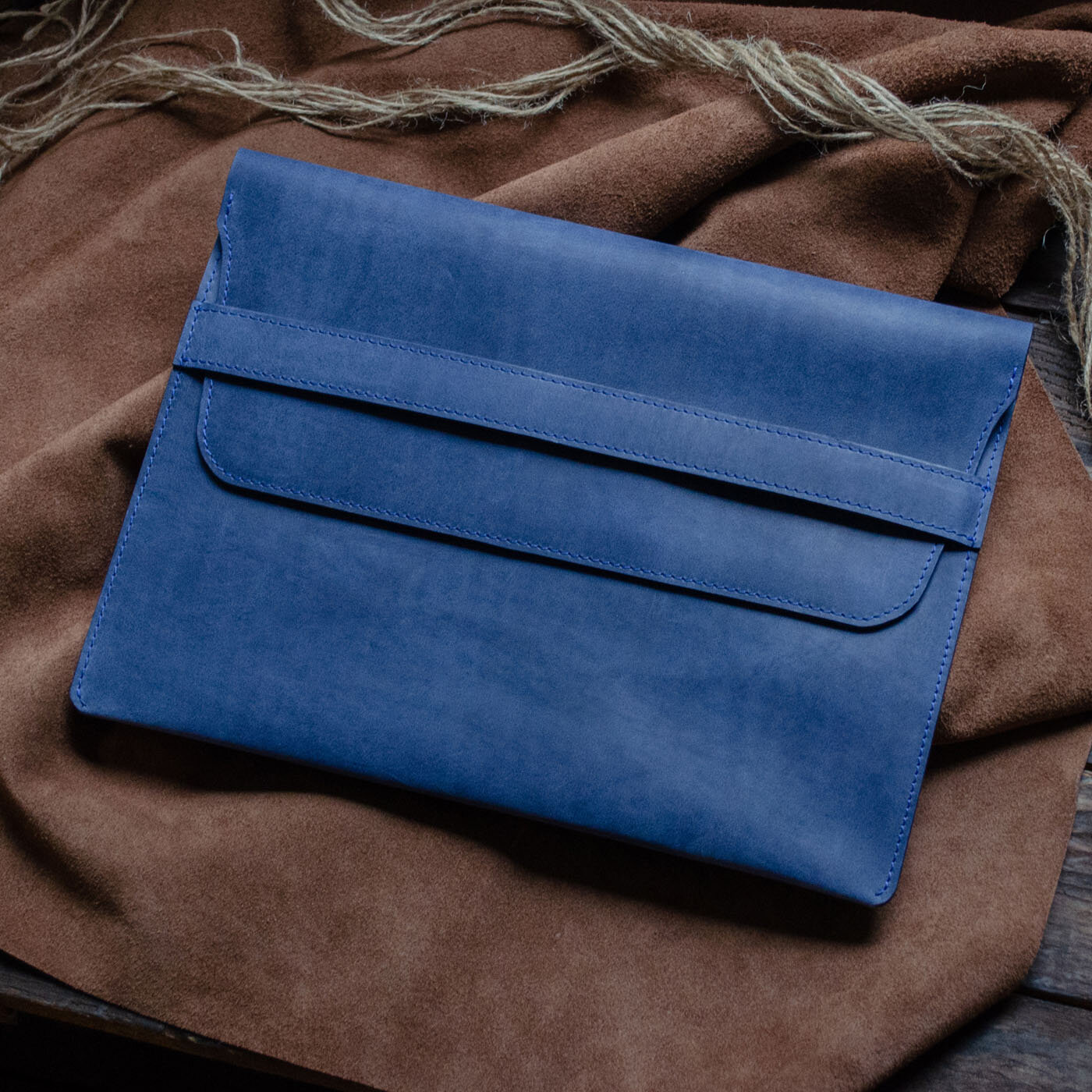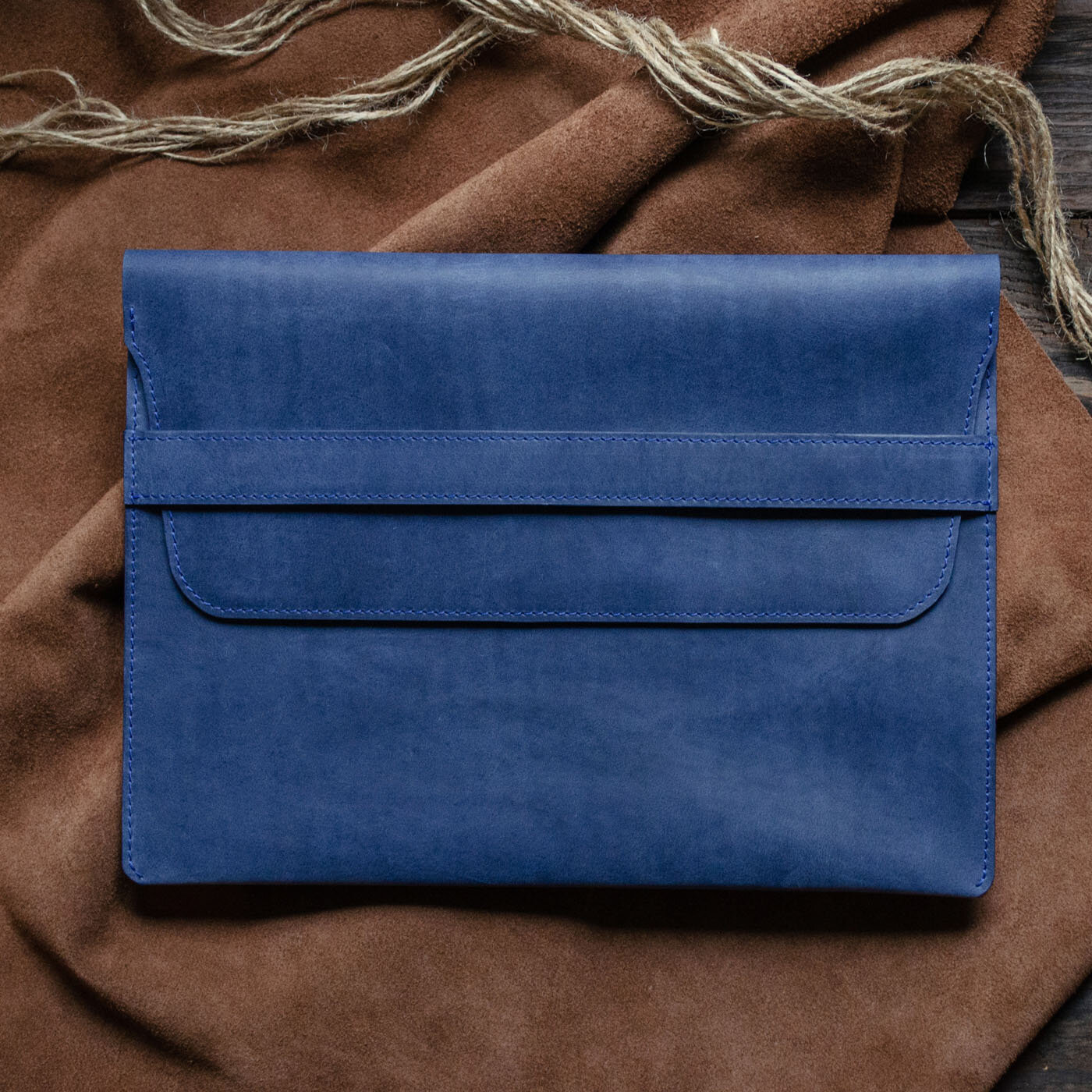 Купить Кожаный чехол для ноутбука 13 дюймов, цвет синий. Натуральная плотная кожа. На застежке с доставкой по всей России.