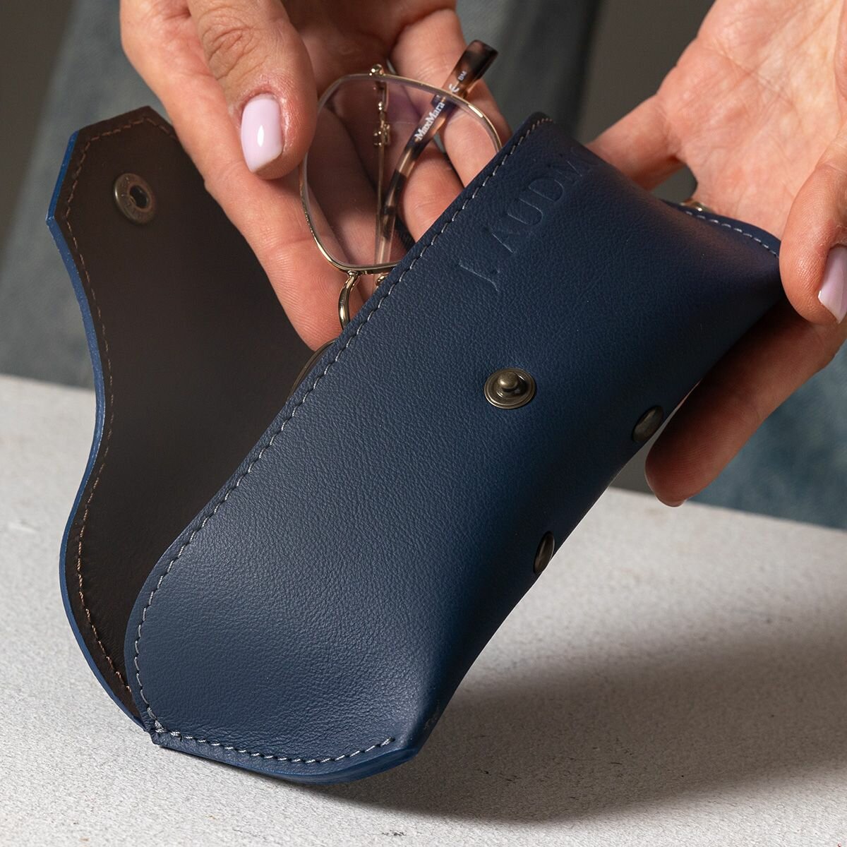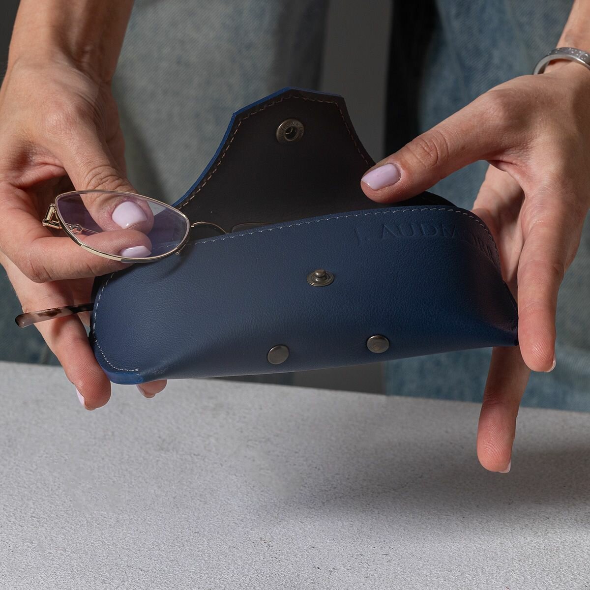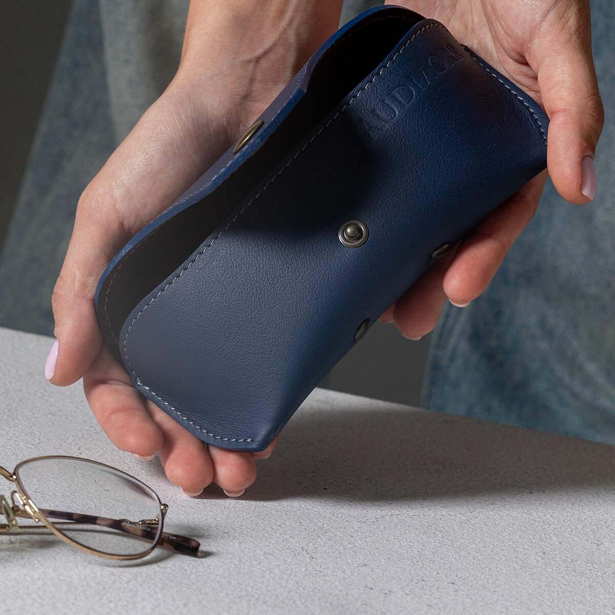 Кожаный чехол для солнцезащитных очков Hyde Indigo by J.Audmorr, синий, мужской и женский