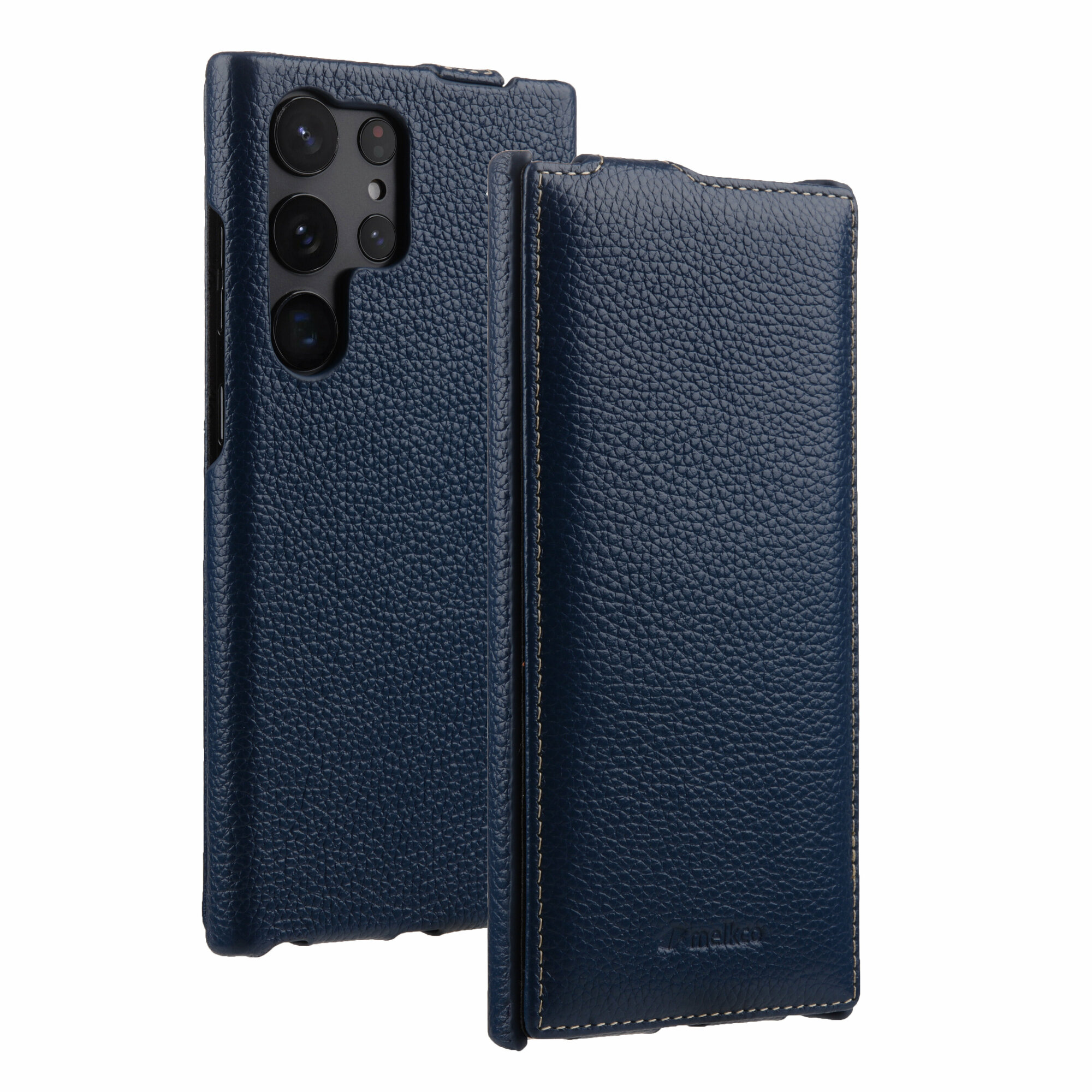 Купить Кожаный чехол флип Melkco Jacka Type для Samsung Galaxy S23 Ultra, темно-синий с доставкой по всей России.