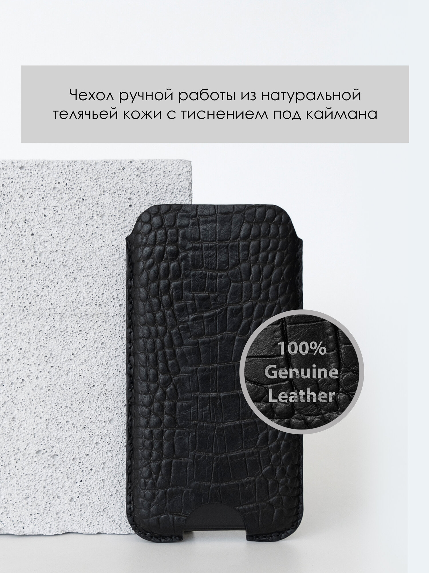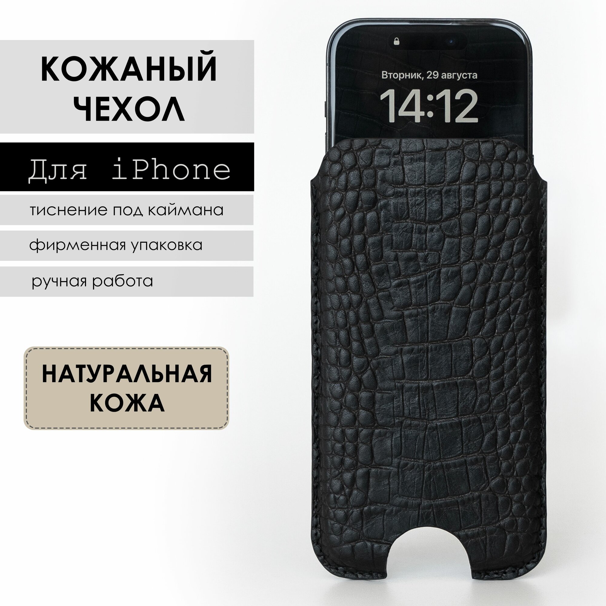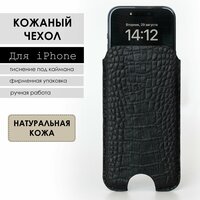 Кожаный чехол карман для iPhone 15/16, натуральная кожа с тиснением каймана, черный: сравнение цен, характеристики, фото, актуальное наличие и цены.