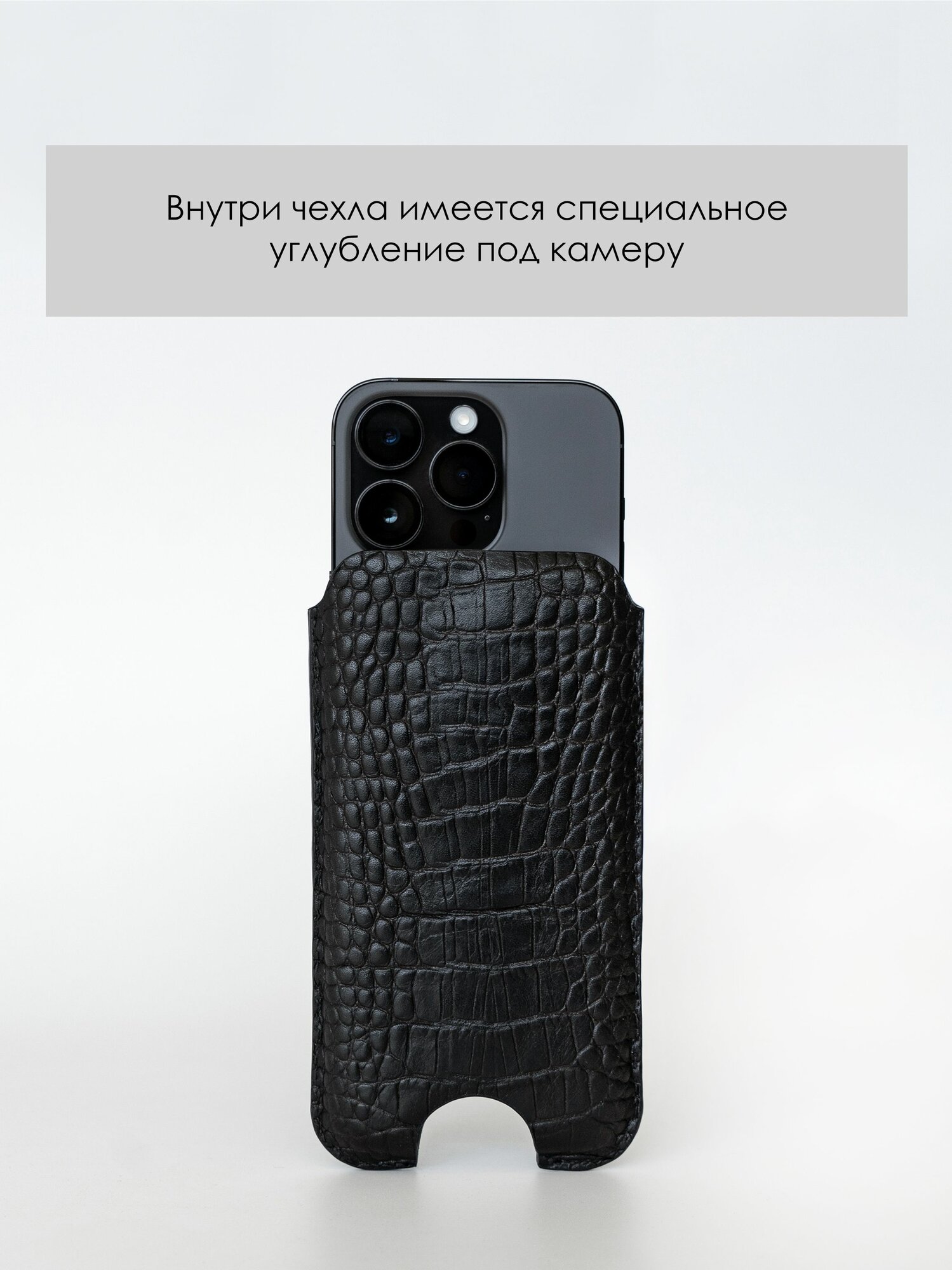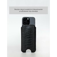 Купить Кожаный чехол карман для iPhone 15/16, натуральная кожа с тиснением каймана, черный с доставкой по всей России.