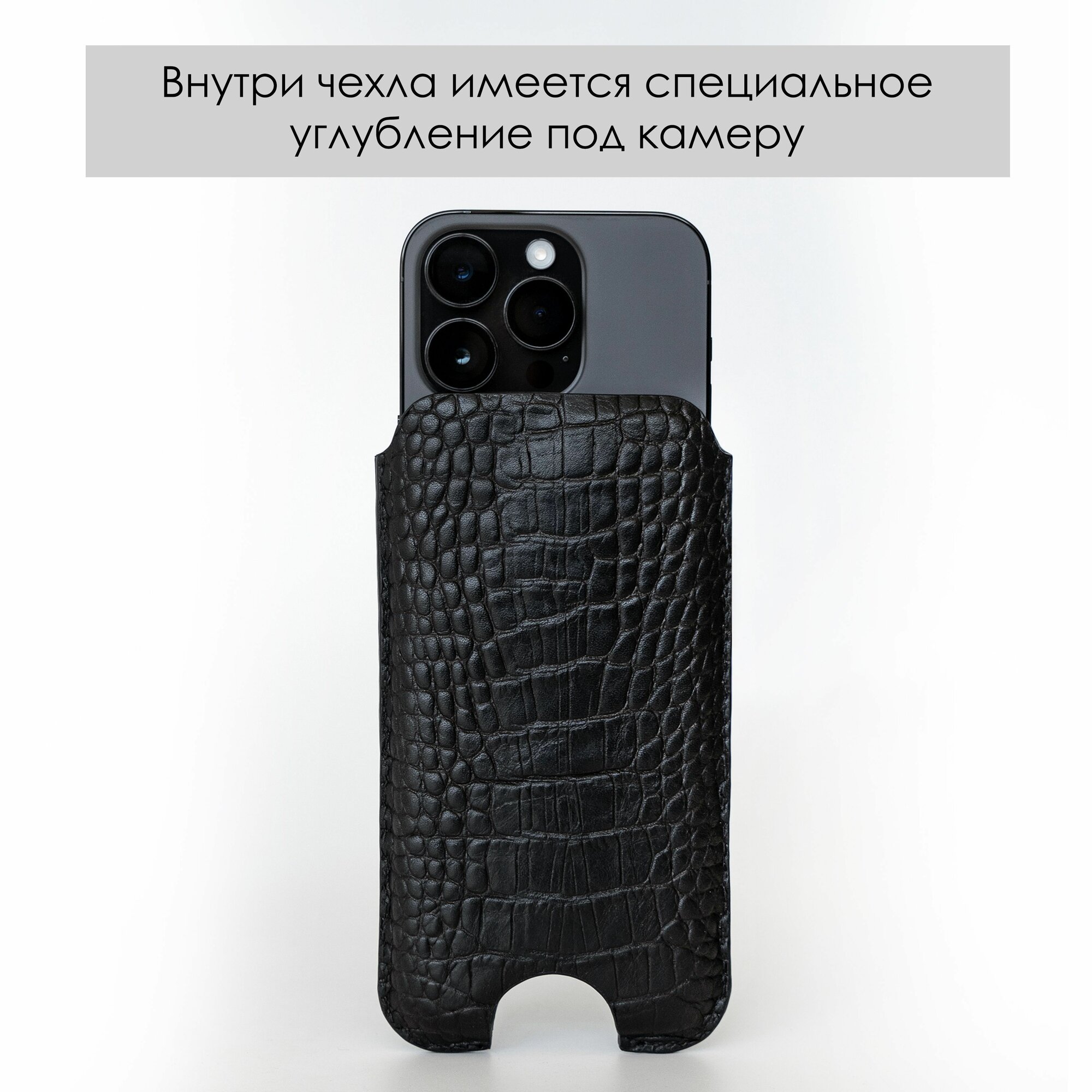 Купить Кожаный чехол карман для iPhone 17 Pro Max, чёрный с доставкой по всей России.