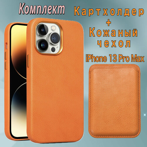 Комплект кожаный чехол и кожаный картхолдер с MagSafe