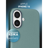 Купить Кожаный чехол Rosco на Apple iPhone 16 (Айфон 16), натуральная кожа, бирюзовый с доставкой по всей России.