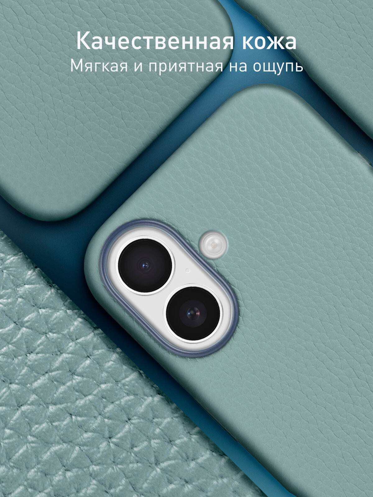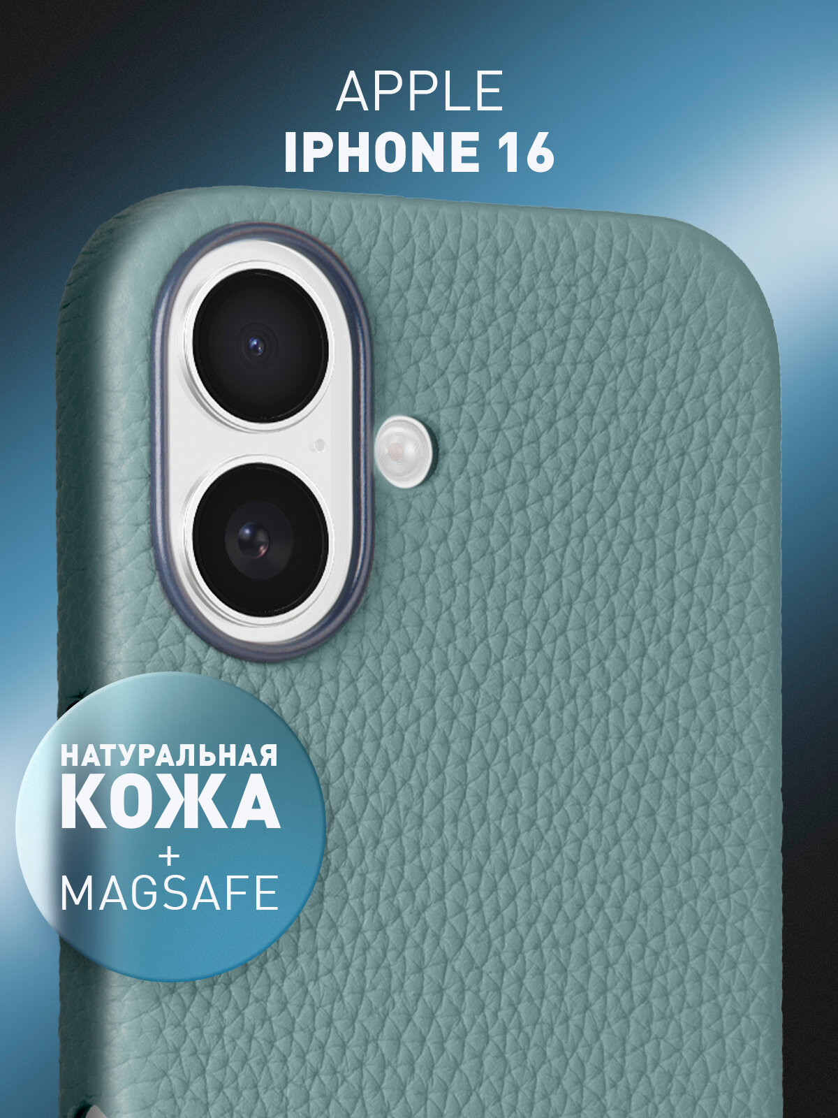 Кожаный чехол Rosco на Apple iPhone 16 (Айфон 16), натуральная кожа, бирюзовый: сравнение цен, характеристики, фото, актуальное наличие и цены.