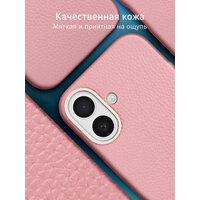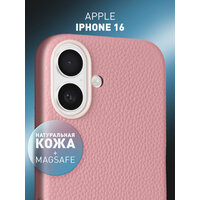 Купить Кожаный чехол Rosco на Apple iPhone 16 (Айфон 16), натуральная кожа, розовый с доставкой по всей России.