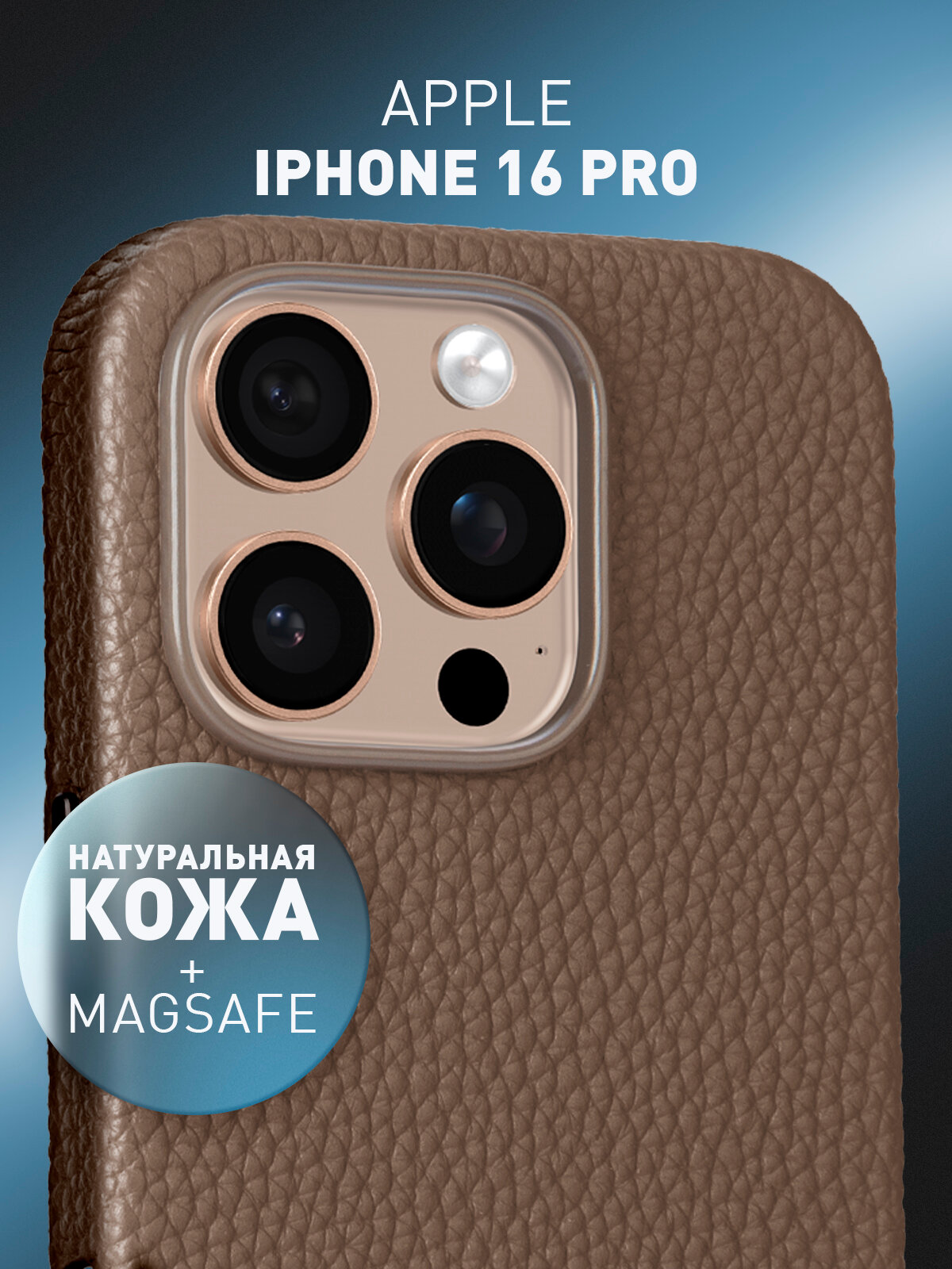 Купить Кожаный чехол Rosco на Apple iPhone 16 Pro (Айфон 16 Про), натуральная кожа, коричневый с доставкой по всей России.