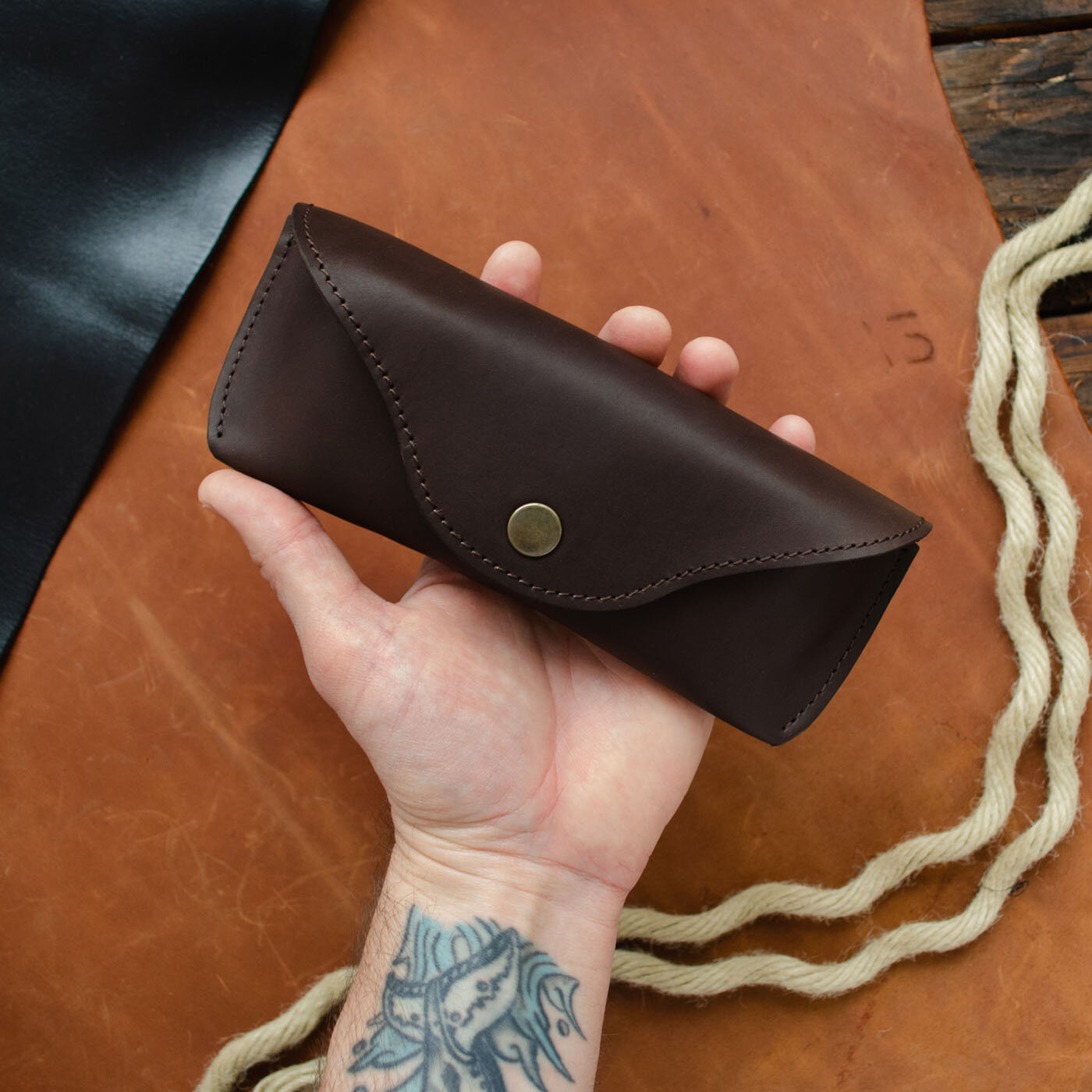 Кожаный футляр для очков (Очечник) будет удобен каждому, у кого есть очки. Причем, мы уверены, что такой футляр "переживет" любые очки! Мы делаем очечники из более плотной кожи, чем наши небольшие изделия.